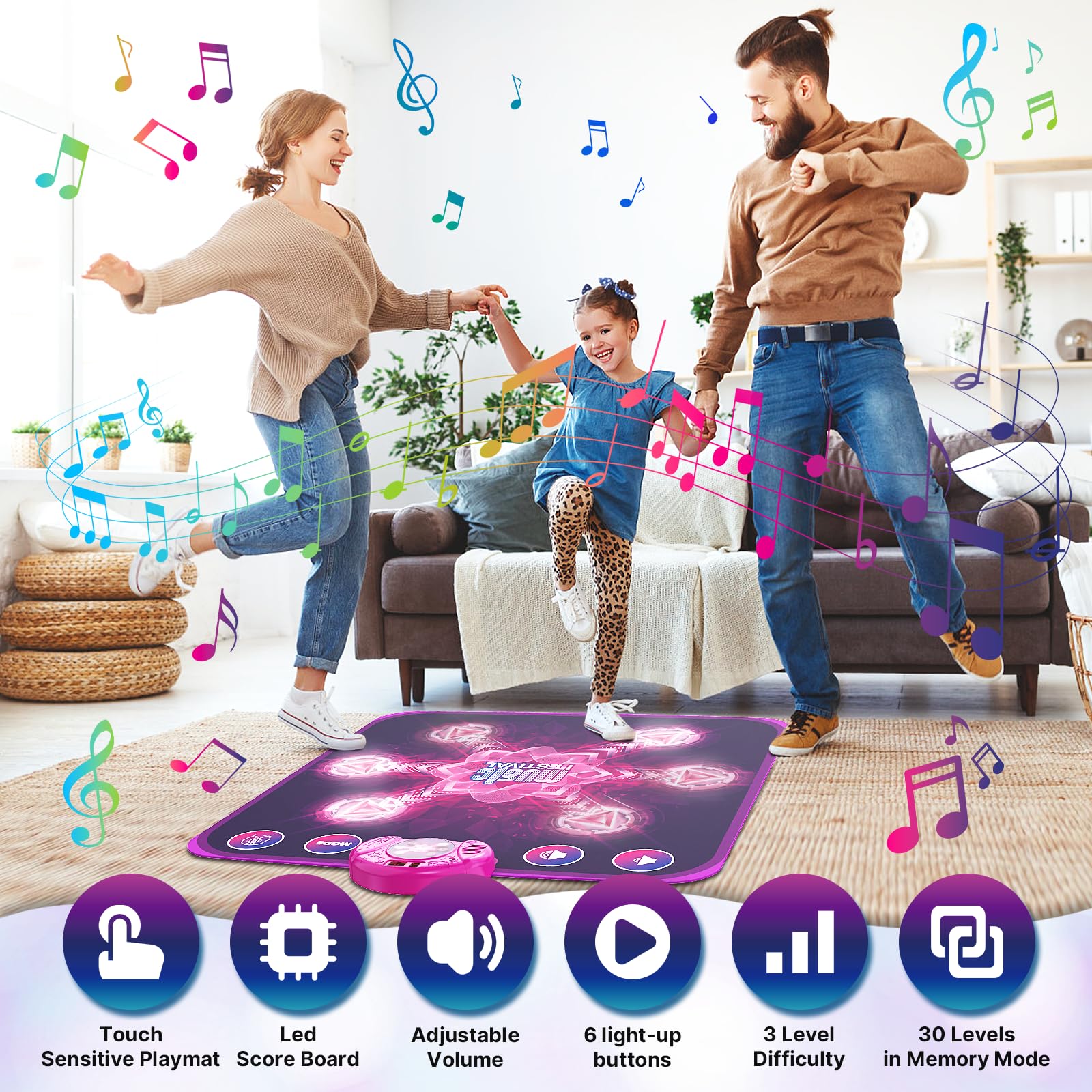 - 🎵【Musikalisches Lernspielzeug】Die Tanzmatte unterstützt 5 Sprachen: Englisch, Deutsch, Französisch, Italienisch und Spanisch. Es ist die beste musikalische Tanzmatte für Mädchen von 3-12 Jahren. Halten Sie Ihre Kinder von Videospielen weg und trainieren Sie auf die lustigste Art und Weise, verbessern Sie die Auge-Fuß-Koordination, Motorik, Reflexe und Gedächtnis Ihres Kindes beim Tanzen.
