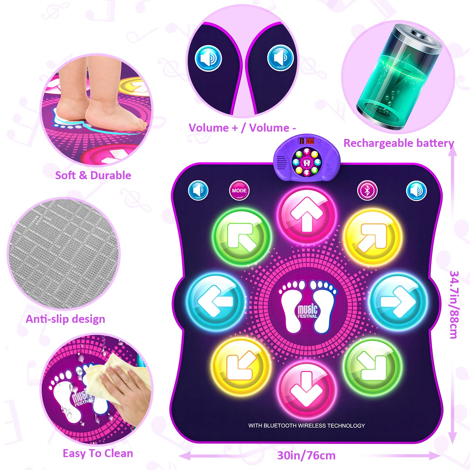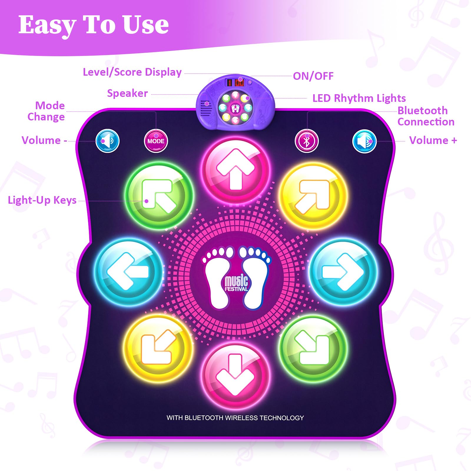 - 🎶【8 Pfeile und Aufleuchten】Unsere Tanzmatte wurde auf 8 Pfeile aktualisiert, mehr als jede andere Tanzmatte auf dem Markt, die Ihrem Kind mehr Spaß beim Tanzen geben kann. Und diese 8 Pfeile können alle angezündet werden, die wunderschönen Lichter ziehen die Aufmerksamkeit Ihres Kindes auf sich und sorgen dafür, damit Ihr Kind das Tanzen liebt.