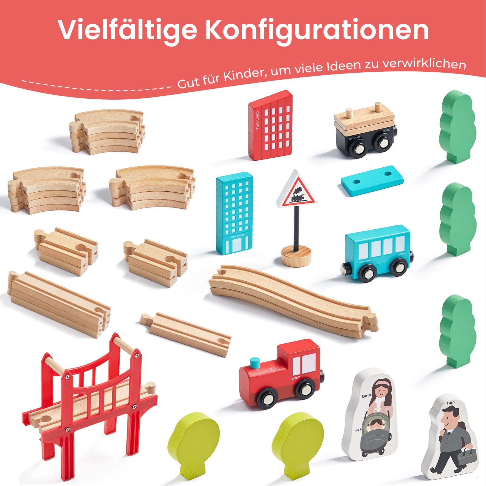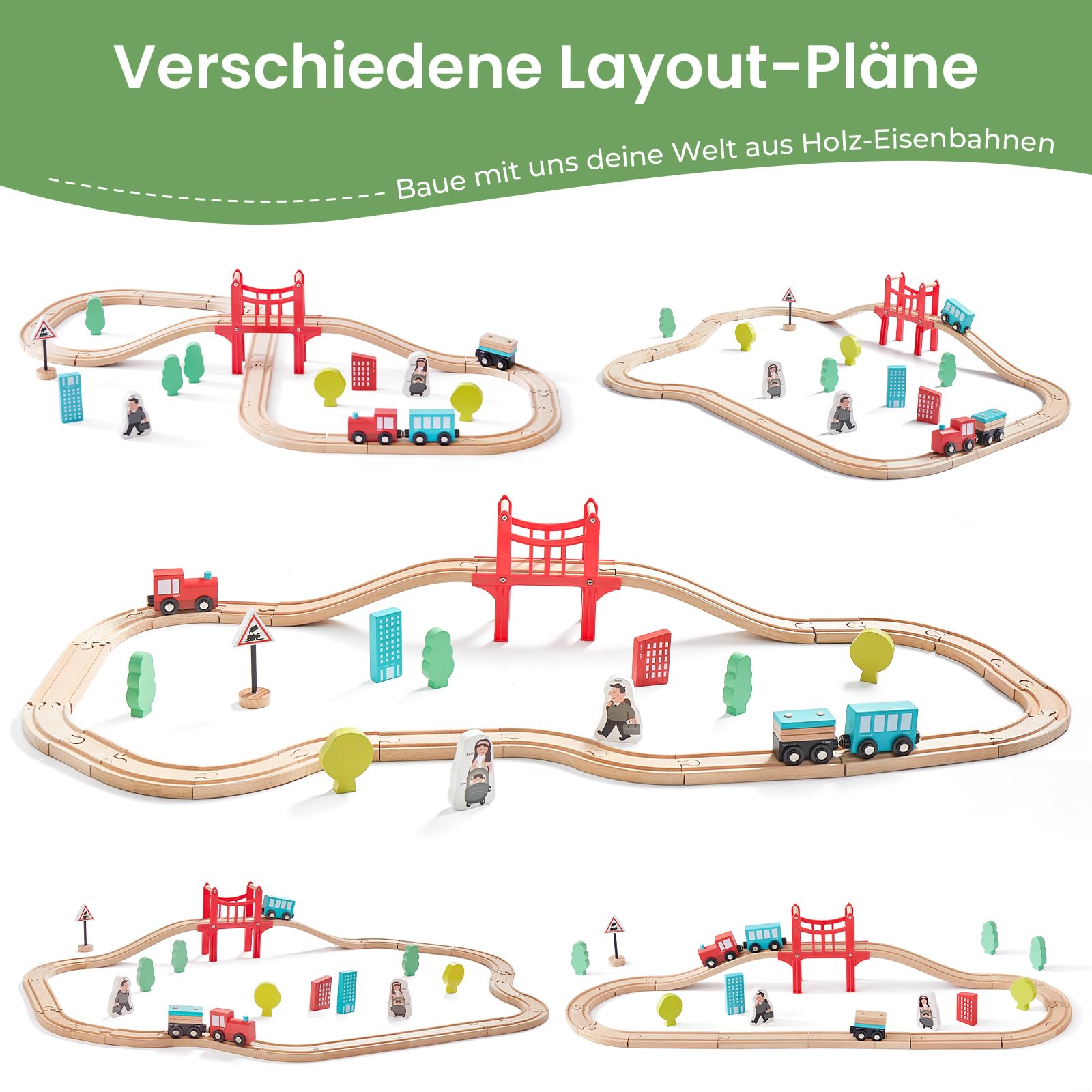 - Premium Holzhandwerkskunst: Diese Holzbahngleis-Sets bestehen aus Buchenholz, robuster als Kiefer, und verfügt über handgeschliffene Kanten, um Kinder beim Spielen besser zu schützen. Sie sind außerdem frei von BPA, Blei und Phthalaten.