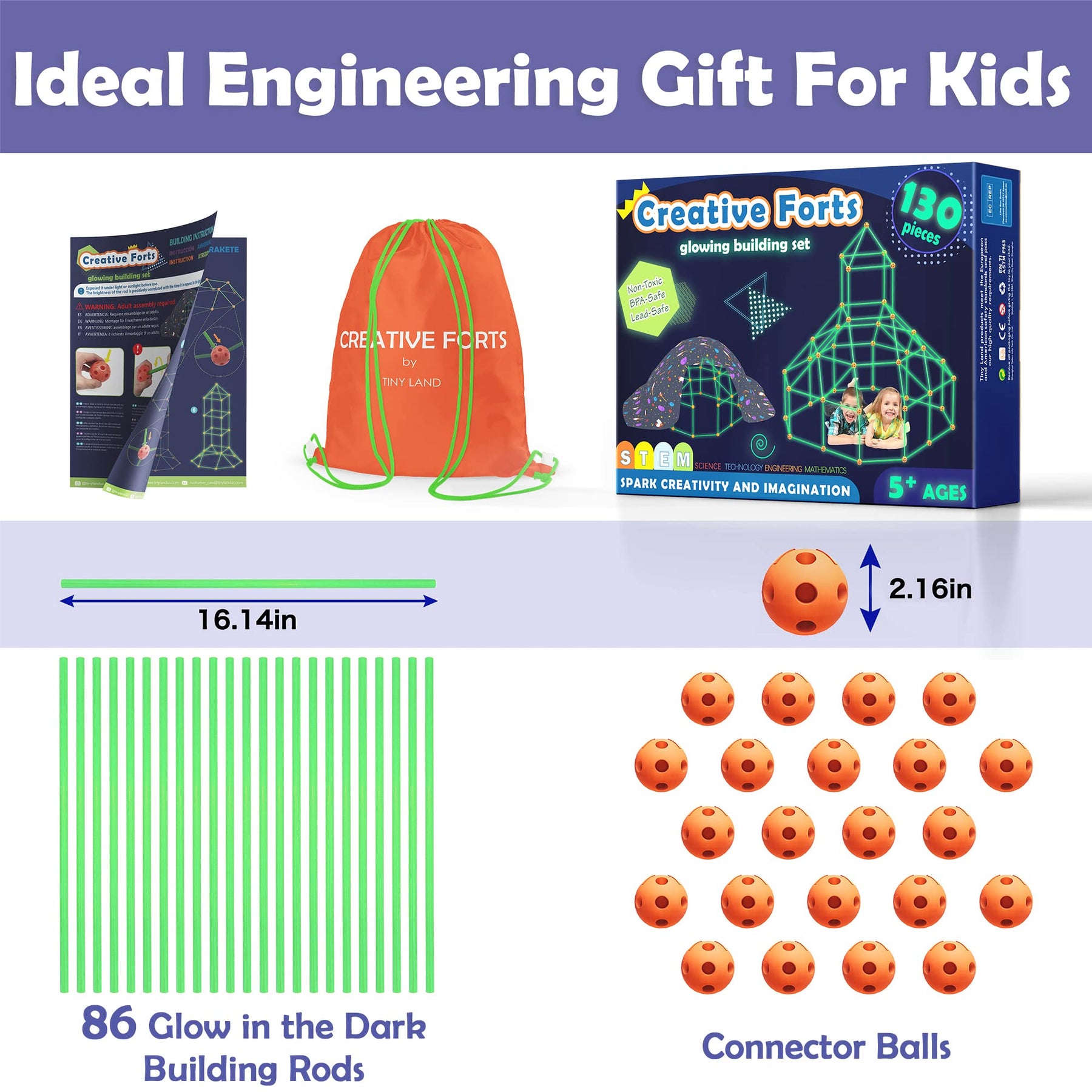 • Kinder Höhle Bauset: 86 leuchtende Stangen und 44 Kugeln. Diese Konstruktion kann die Fantasie von Kindern vollständig entwickeln, um mehr lustige Strukturen aufzubauen. Im Vergleich zu anderen ist unser Ball solide, daher ist die Verbindung stabiler als die hohlen Kugeln anderer und es ist nicht einfach zu kollabieren. Unsere Betriebsanweisungen enthalten 5 Probengebäudeanweisungen (IGLU, Rakete, Schloss, Bunker, Tunnel). Kommen Sie mit einem Rucksack, tragbar für Innen- und Outdoor -Spiele.