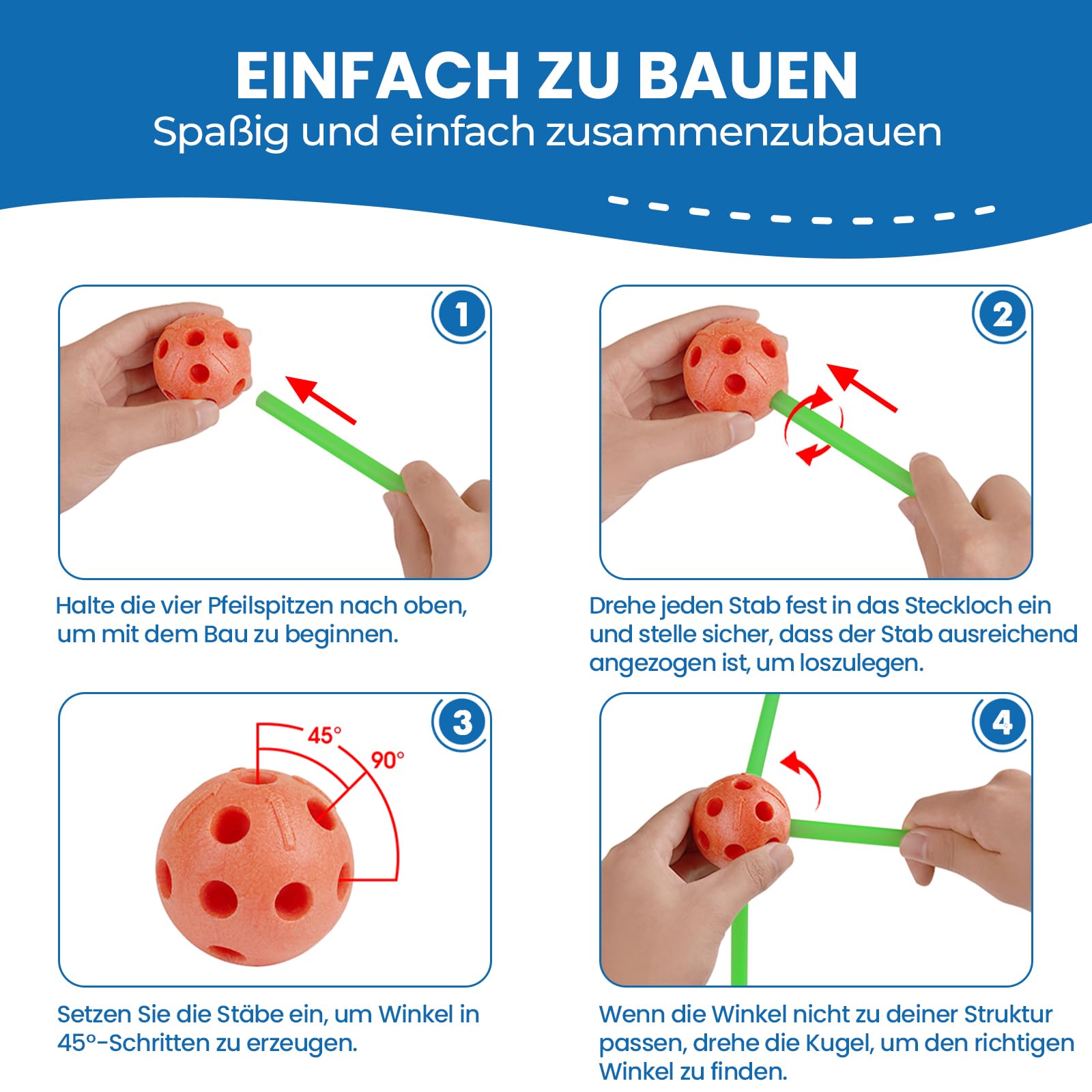 - DIY Outdoor Bauspielzeug: Das kreative Konstruktionsspielzeug enthält 44 kindersichere Gelenkkugeln und 86 Stangen, die sich einfach drehen und die Stange in die Kugeln stecken lassen, für eine einfache Montage. Perfekt für Kinder im Alter von 5 bis 12 Jahren, um ein Spielhaus oder eine geheime Basis im Freien oder im Garten zu bauen. Plus ein tragbarer Rucksack zur Aufbewahrung des Fort Kits.
