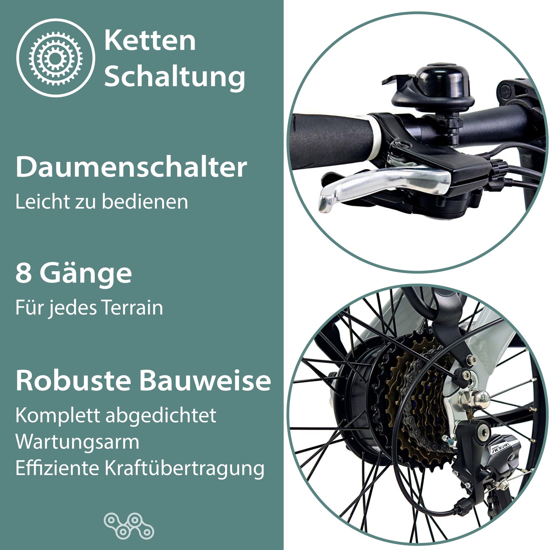 • HOHE QUALITÄT: Robuste Komponenten wie 8 Gang Kettenschaltung, Felgenbremsen und Straßenreifen garantieren Langlebigkeit des 20 Zoll E-Faltfahrrads