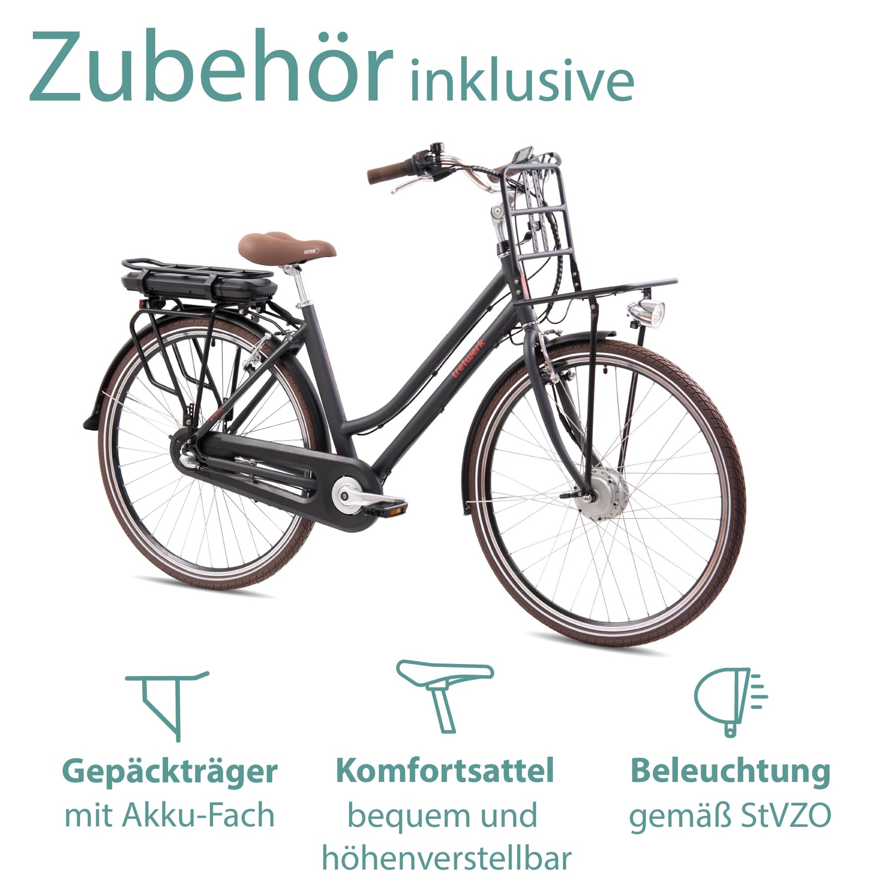 TRETWERK - 28 Zoll E-Bike Damen Pedelec - Sophia schwarz - E-Citybike Damenfahrrad mit 3 Gang Shimano Nexus Nabenschaltung - Elektrofahrrad mit Frontmotor 250W, 36V