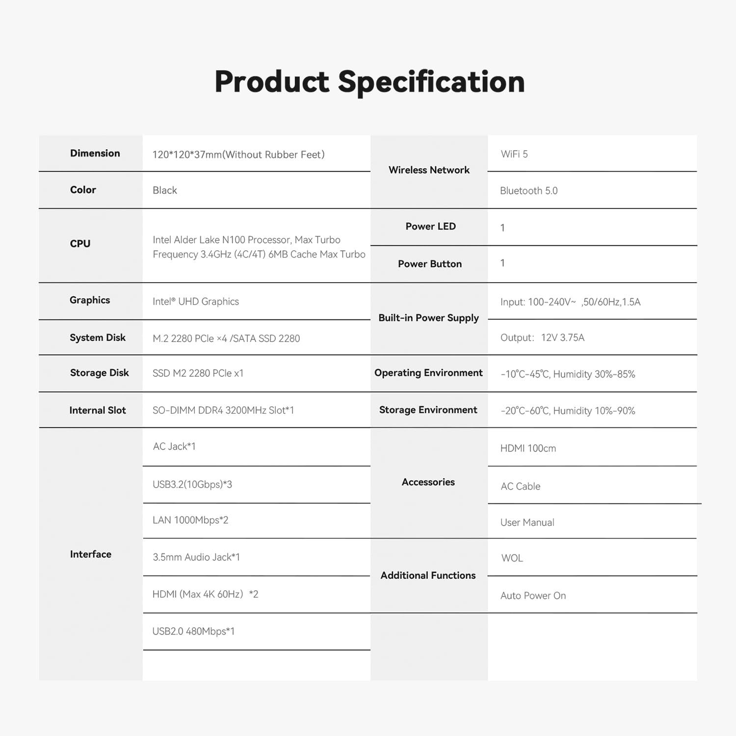 - 🎮【Ultra HD 4K@60Hz Dual Display】Der N100 Mini-PC integriert eine Intel Ultra HD 4K@60Hz Auflösung (4096x2160) Grafikkarte und Display über zwei HDMI-Anschlüsse und ist somit ideal für Home Entertainment, Filme und Videokonferenzen. Genießen Sie alle Ihre Lieblingsfilme mit Ihrer Familie für das beste Seherlebnis. Sie können Ihre Produktivität auch steigern, indem Sie zwei Monitore gleichzeitig anschließen und unterschiedliche Aufgaben auf unterschiedlichen Bildschirmen ausführen.