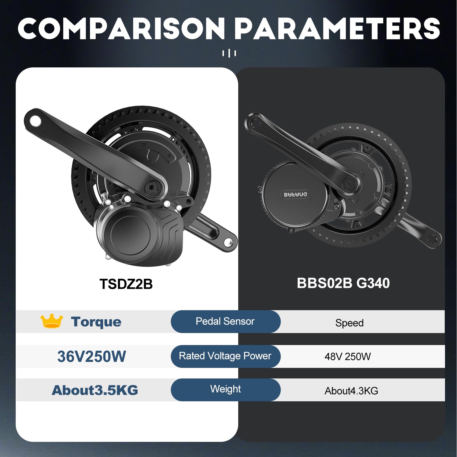 Die 2024-Version des TSDZ2B 36V 250W-Motors aktualisiert die TSDZ2 mit zwei Kupplungen am großen Zahnrad, um einen glatteren, effizienteren Betrieb und eine längere Lebensdauer zu gewährleisten. Das 36V-Modell liefert ein Drehmoment von 80Nm und hat eine IP54-Bewertung für zuverlässige Leistung unter verschiedenen Bedingungen