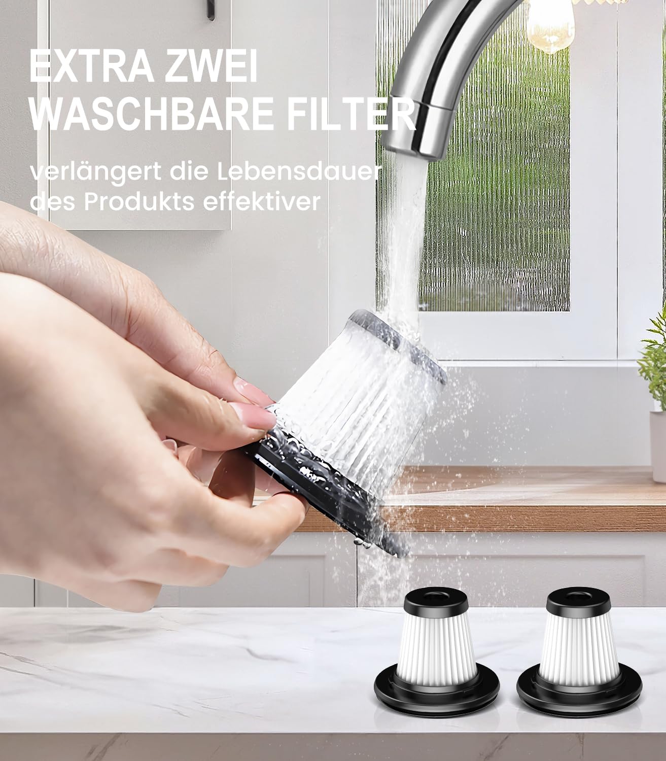 - 3 waschbare HEPA-Filter - Unser leistungsstarker Staubsauger ist mit einem herausnehmbaren, waschbaren und wiederverwendbaren HEPA-Filter ausgestattet. Nach der Reinigung des Filters lassen Sie ihn bitte trocknen, bevor Sie ihn wieder in den Staubsauger einsetzen. Um die Lebensdauer des Staubsaugers zu verlängern, haben wir zwei zusätzliche Filter eingebaut, wir hoffen, dass Sie es genießen werden.
