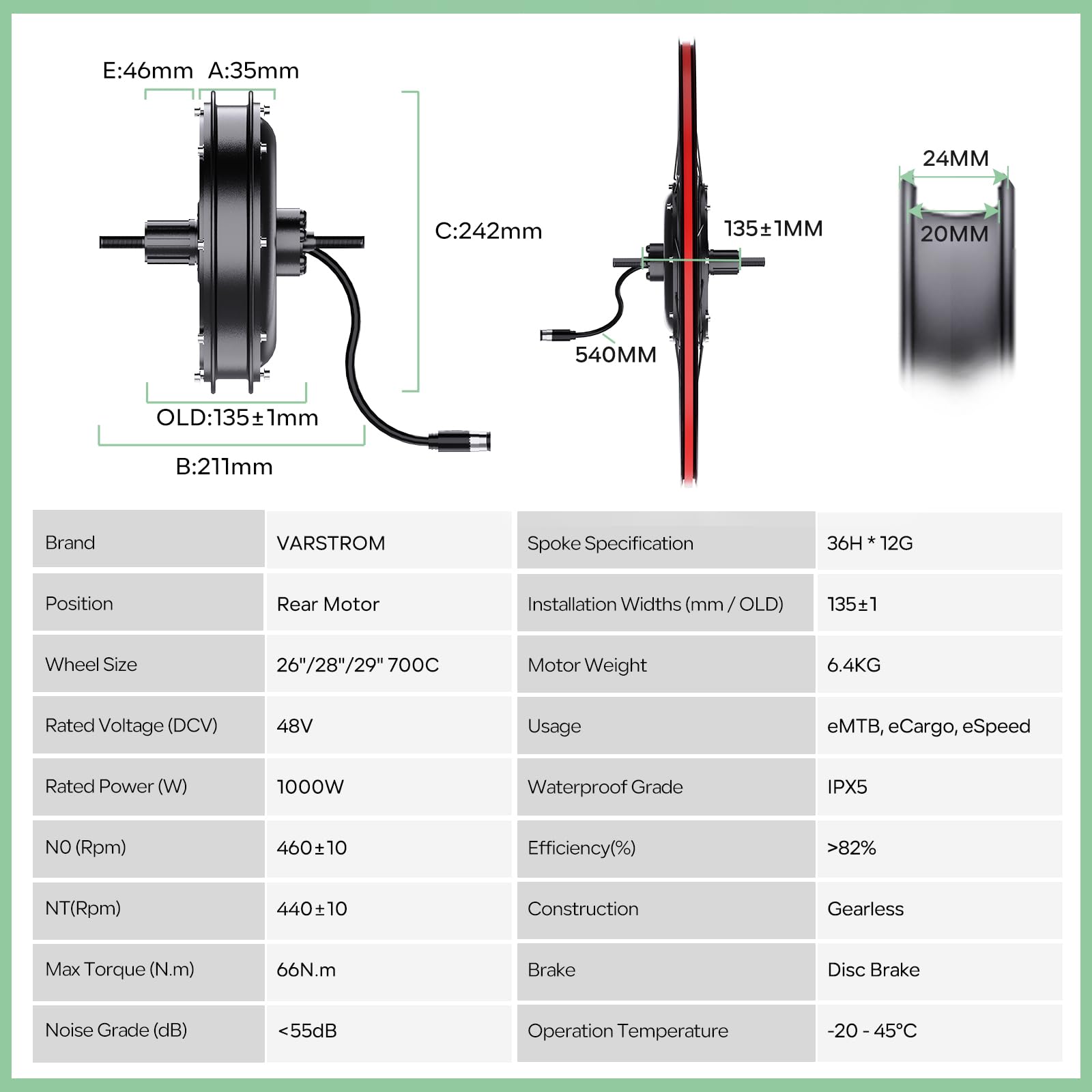 [ Leistungsstarker Bürstenloser, Getriebeloser Motor ] Dieser 48V 1000W Hinterradnabenmotor liefert ein Spitzen-Drehmoment von bis zu 66 N.m und beeindruckt mit einer Effizienzrate von 82%. Dieser Motor gewährleistet bessere Stabilität und Kletterfähigkeit, erreicht Höchstgeschwindigkeiten von 50 K-M-H und bietet ein aufregendes Fahrerlebnis mit starker Beschleunigung und außergewöhnlicher Kletterfähigkeit, ideal für verschiedene Gelände und Bedingungen