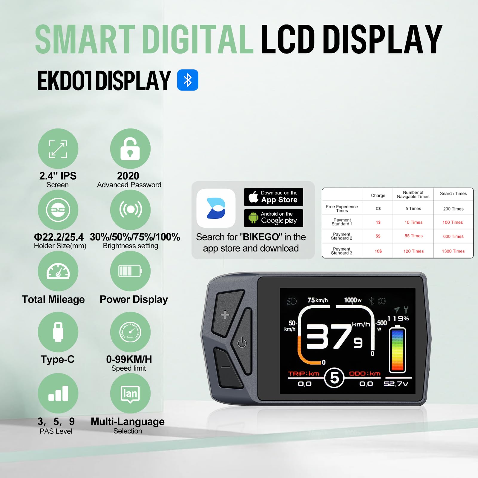 EKD01 TFT-LCD-Display: Ausgestattet mit 8 Einstellungssprachen,Überraschende Features und Typ-C-Ladeanschluss, passt es auf Lenker mit Ø22,2/25,4 mm. Im Vergleich zu anderen Modellen kann der ODO auf Null zurückgesetzt werden. Das EKD01 ist eine gute Wahl für Radfahrer, die an mehreren Funktionen interessiert sind, aber ein begrenztes Budget haben