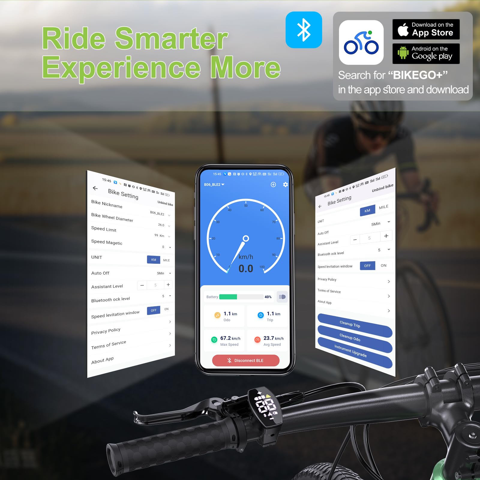 - Bildschirm: Das 1,5-Zoll-HD-LED-Display bietet klare, leicht ablesbare Daten auf einen Blick – auch während der Fahrt