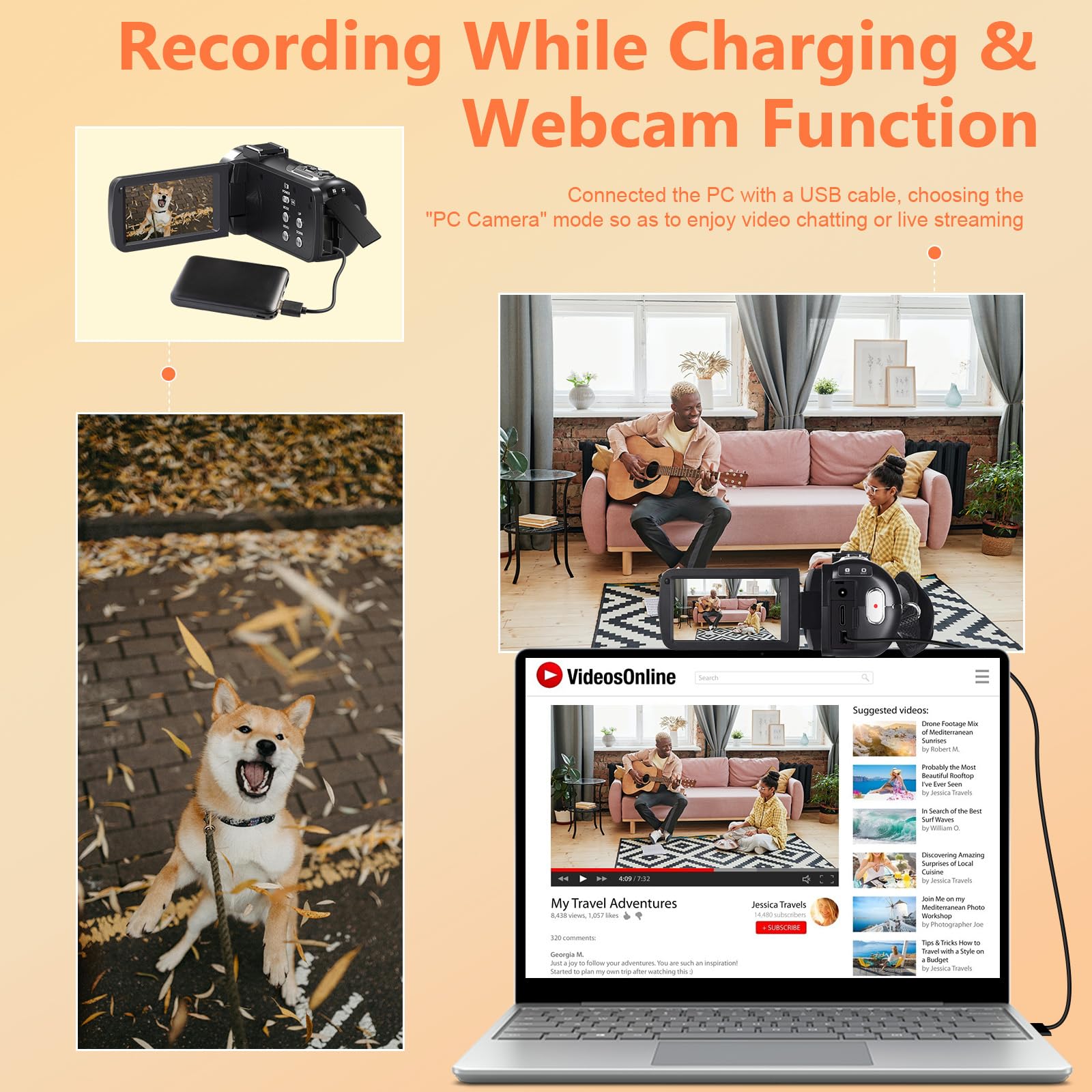 - 【Einfach zu bedienen】Dieser 4K Camcorder unterstützt einen 3-Zoll-IPS-HD-Bildschirm, die Bedienoberfläche ist intuitiv und einfach mit einer Hand zu bedienen, was ihn zu einer idealen Digitalkamera für die Erfassung von Familienmomenten macht. Verwenden Sie das mitgelieferte USB-Kabel, um den Computer anzuschließen und Dateien einfach zu übertragen. Es ist leicht und eignet sich zum Einstecken in die Tasche. Mit diesem HD-Camcorder können Sie jeden kostbaren Moment Ihres Alltags aufzeichnen.