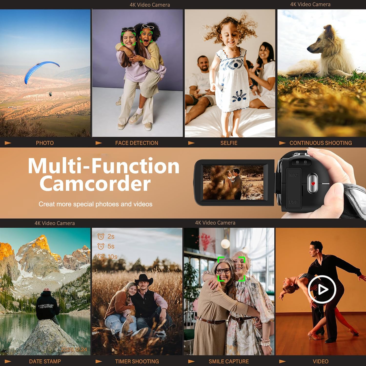 - 【HD 4K 44MP Videokamera】Die Videokamera 4k bietet kristallklare 44MP-Fotos und 4K-Videos und bereichert Ihr Geschichtenerzählen mit Schärfe und lebendigen Farben. Mit dem 18-fachen Digitalzoom können Sie hinein- und herauszoomen, um eine klarere Sicht auf entfernte Objekte zu erhalten. Darüber hinaus wird der Camcorder mit einer 32-GB-SD-Karte geliefert, die sofort einsatzbereit ist. Diese Kamera ist ein ideales Geschenk für Kinder, Jugendliche, Anfänger und Videoliebhaber.