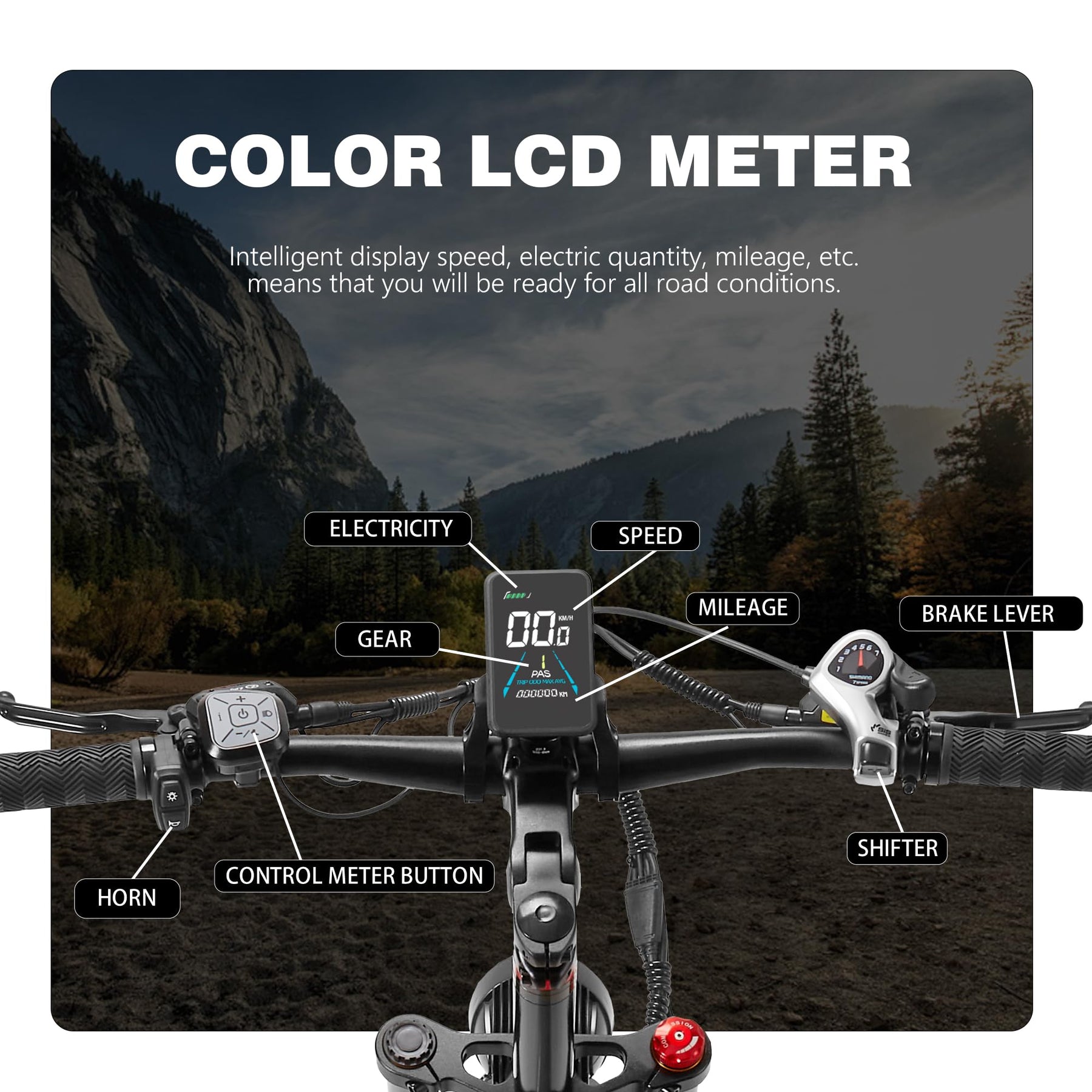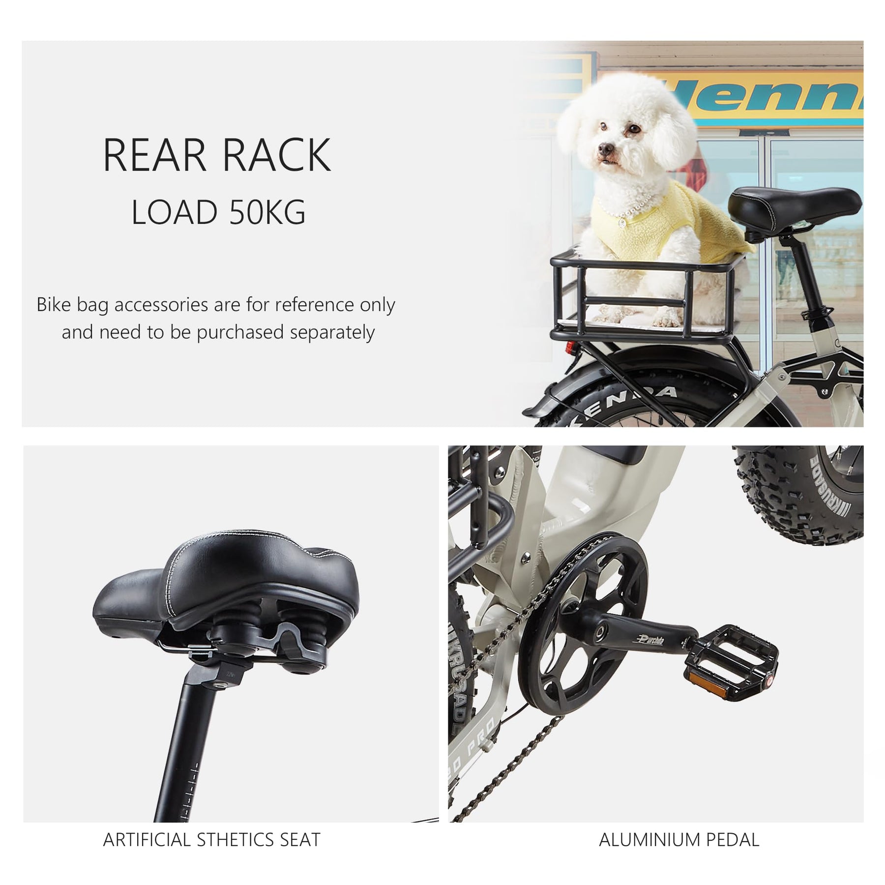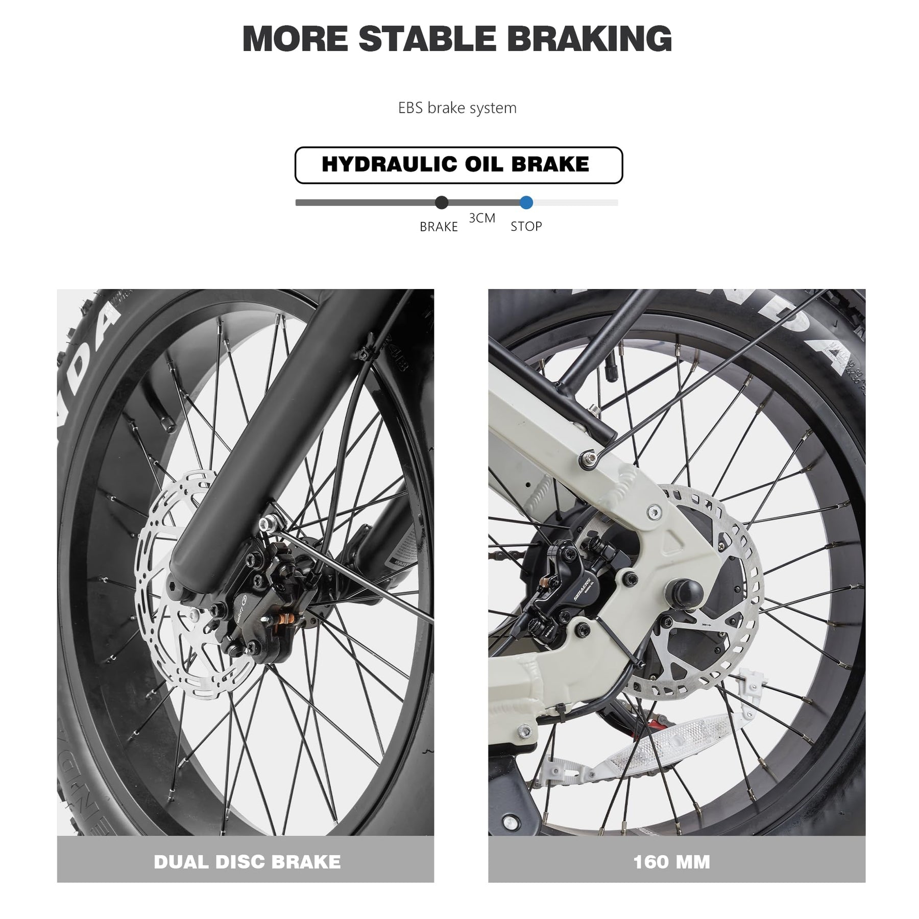 - Bequemes Fahrerlebnis: Das A20PRO E-Bike für Erwachsene ist mit einer coolen Downhill-Gabel und einem hinteren Stoßdämpfer ausgestattet. Die 20X4,0 Zoll breiten Reifen verleihen dem E-Bike eine hervorragende Passierbarkeit und Vibrationsfilterung.