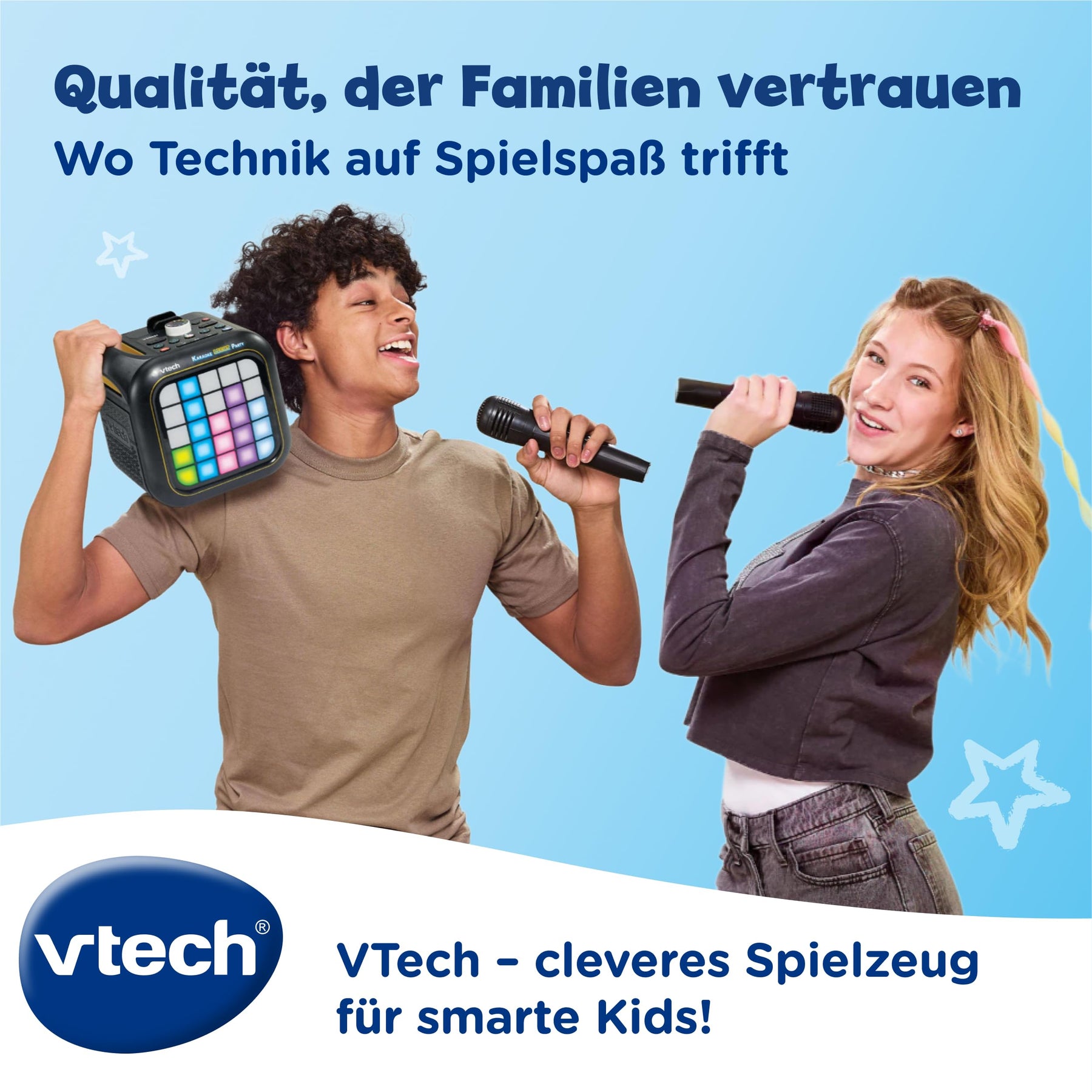 Einzelheiten: Werde zum Star deiner eigenen Karaoke-Show mit der VTech Karaoke Light Party! Die Maschine kommt mit zwei kabellosen Mikrofonen, einer bunten Lichtshow und kraftvollen Lautsprechern, die jede Party zum Leben erwecken. Kinder können ihre Lieblingssongs singen, den Gesang aus Liedern entfernen und mit lustigen Effekten experimentieren. Zusätzlich sorgen interaktive Spiele und eine kreative Pixel-Lichtshow für endlosen Spaß. Dank Bluetooth, Line-In und praktischem Tragegriff lässt sich die Karaoke-Party überall genießen.