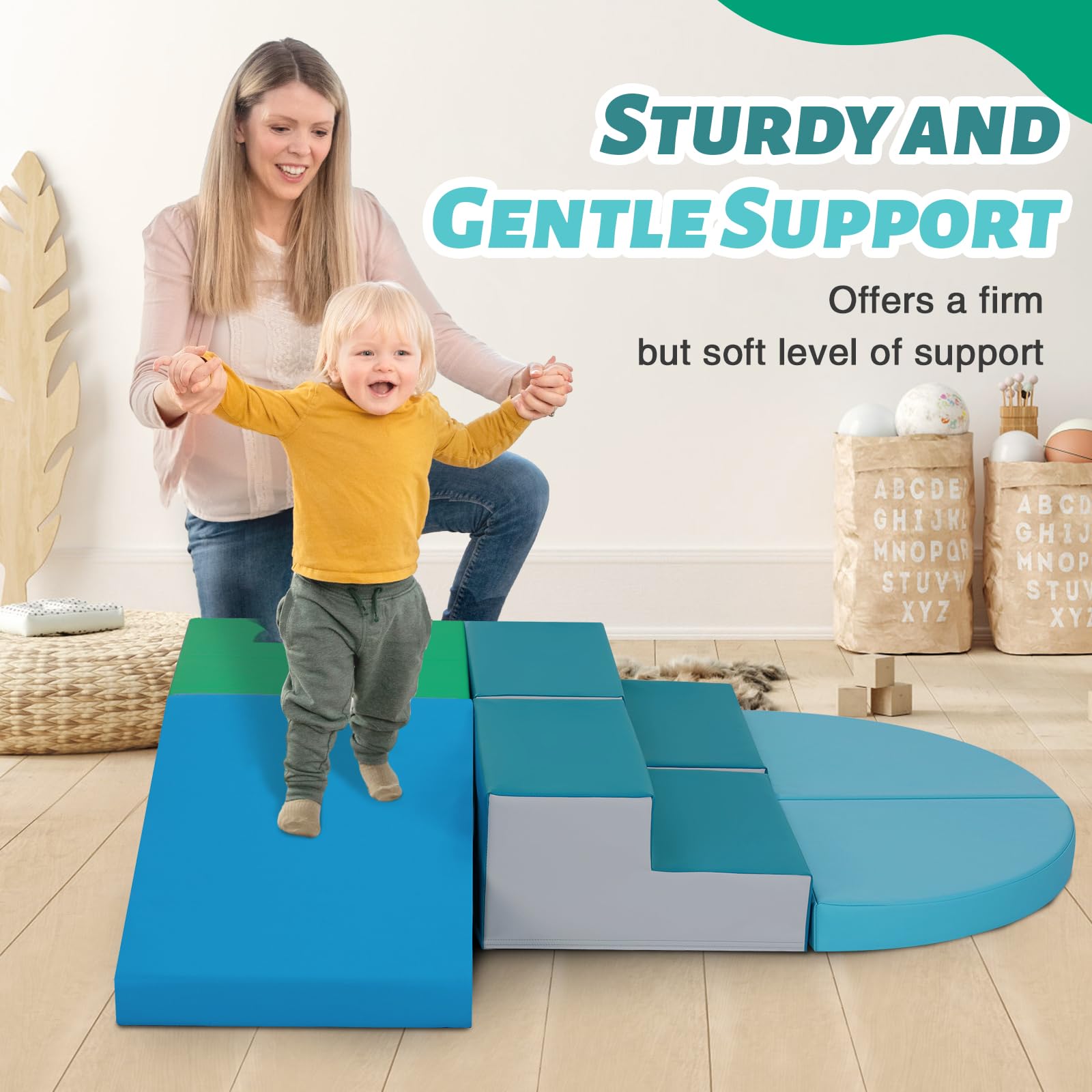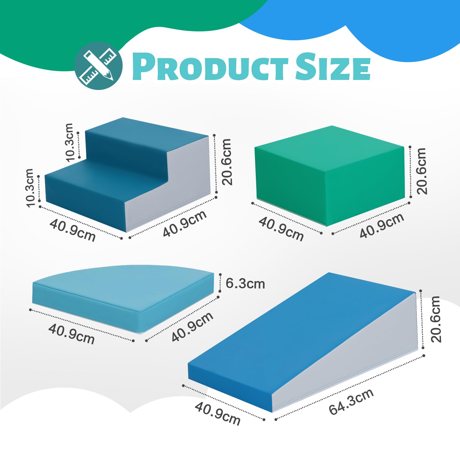 - 6-teiliges Set: Die schaumstoff bausteine indoor set bestehen aus 2 Treppen, 2 Halbmonden, 1 Quadrat und 1 Rutsche. Diese weiche Spielbausteine schaumstoff regt die Fantasie Ihres Kindes an, unendliche Strukturkombinationen zu kreieren, und ermöglicht es ihnen, beim Klettern, Stapeln und Austauschen der vier verschiedenen Formen Spaß zu haben