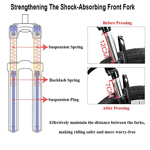 - Verstärkte stoßdämpfende Vordergabel vom U-Typ, robust und langlebig, gute Stoßdämpfung; Doppelscheibenbremsen vorne und hinten, schnelles Bremsen und kurze Distanzen, einfache Wartung und nicht leicht zu beschädigen, verbessern den Fahrkomfort erheblich