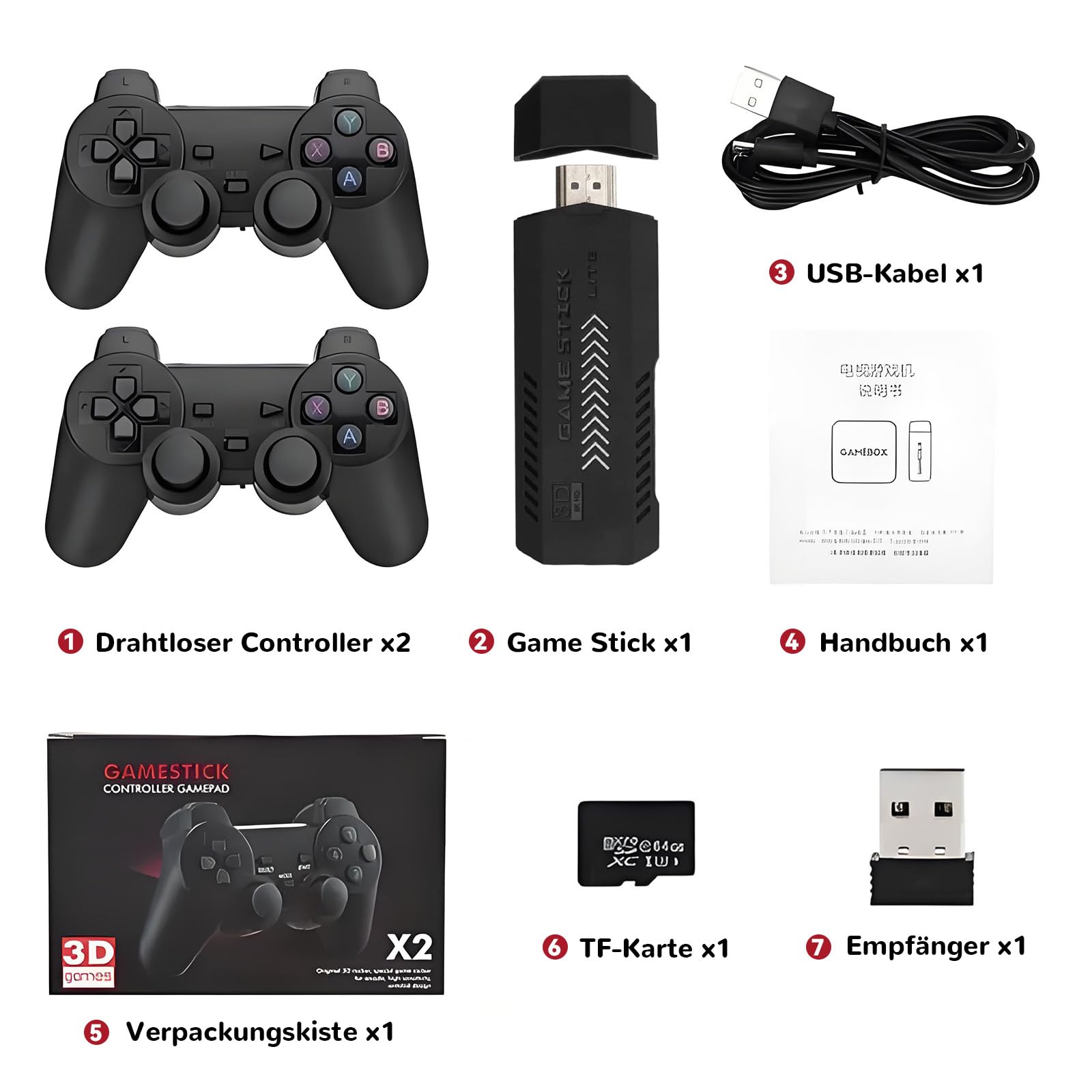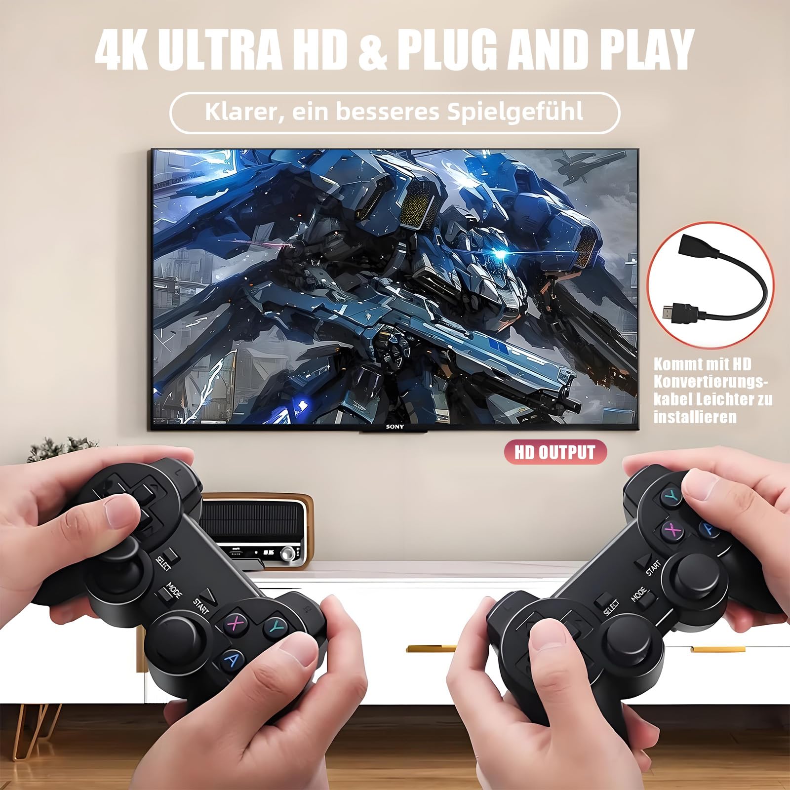 XIXIMENG X2 Plus Retro Konsole Spielkonsole Game Stick 4K,50000+ Spiele 40+ Emulator,Plug and Play Videospielkonsole Retro mit Wireless Controller,Tragbare Spielkonsole,Geschenk für Erwachsene (128G)