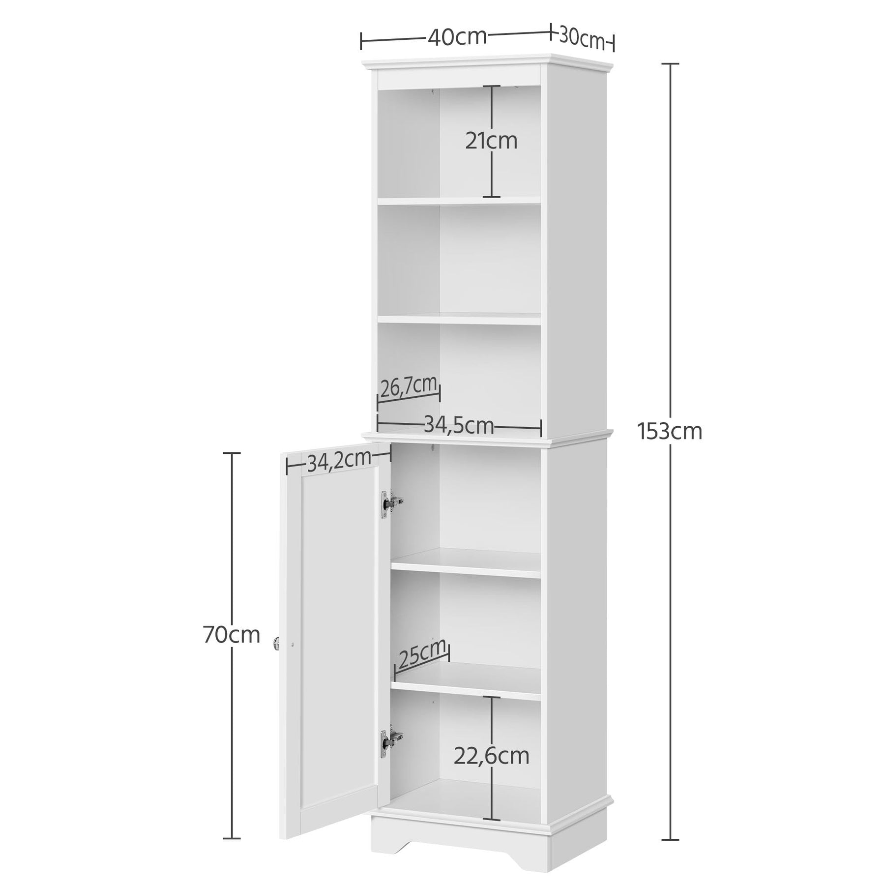 - Platzsparender Schrank: Mit der Größe von 40 cm L × 30 cm B × 153 cm H nutzt dieser Standschrank den vertikalen Platz aus. Er eignet sich ideal für die kleinen Räume und ist eine ideale Ergänzung zum Waschbecken, Waschtisch oder der Waschmaschine
