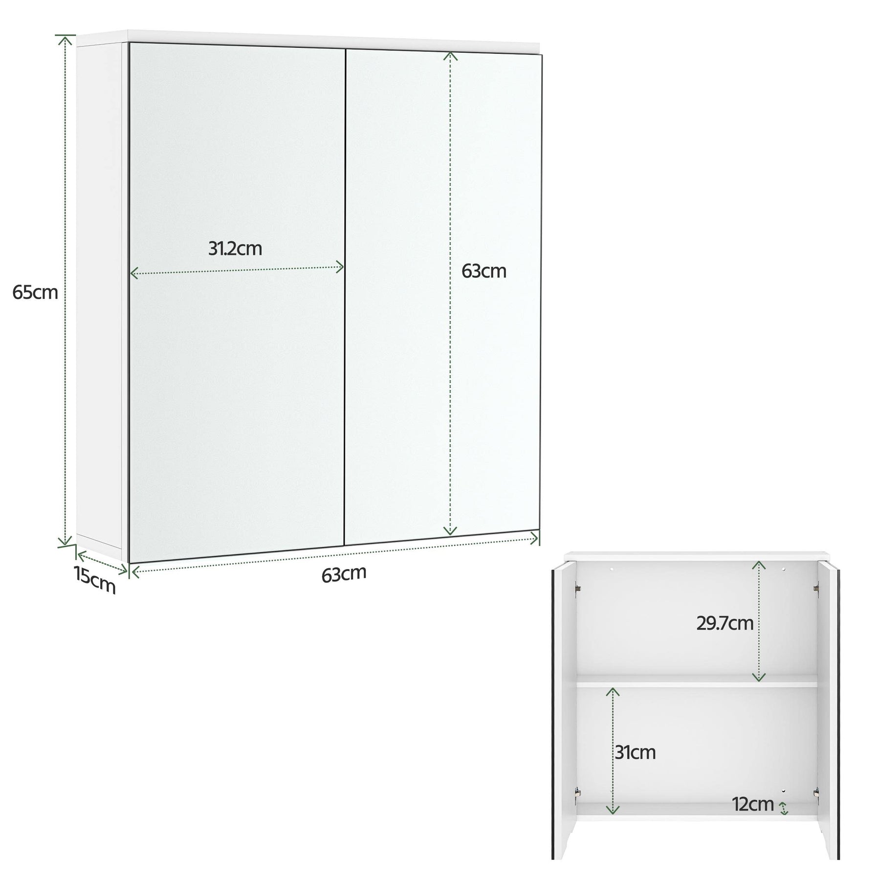 • Modern & Elegant : Der Hängeschrank verfügt über 2 Schranktüren, die mit Spiegel ausgestattet sind, und besitzt eine klassische und neutrale Farbe in Weiß. Damit der Medizinschrank sich optimal in Ihr bestehendes Raumkonzept einfügen lässt und für einen eleganten Charme in Ihrem Zimmer sorgt.