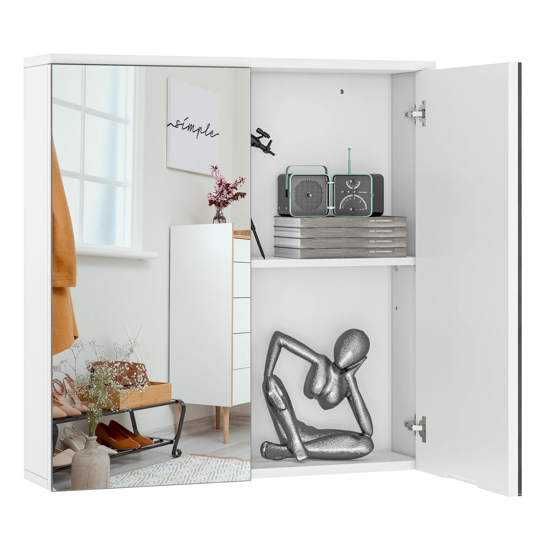 Yaheetech Badezimmerschrank mit 2 Spiegeltüren Hängeschrank Spiegelschrank fürs Bad 2-stufiger Badschrank höhenverstellbare Ablage