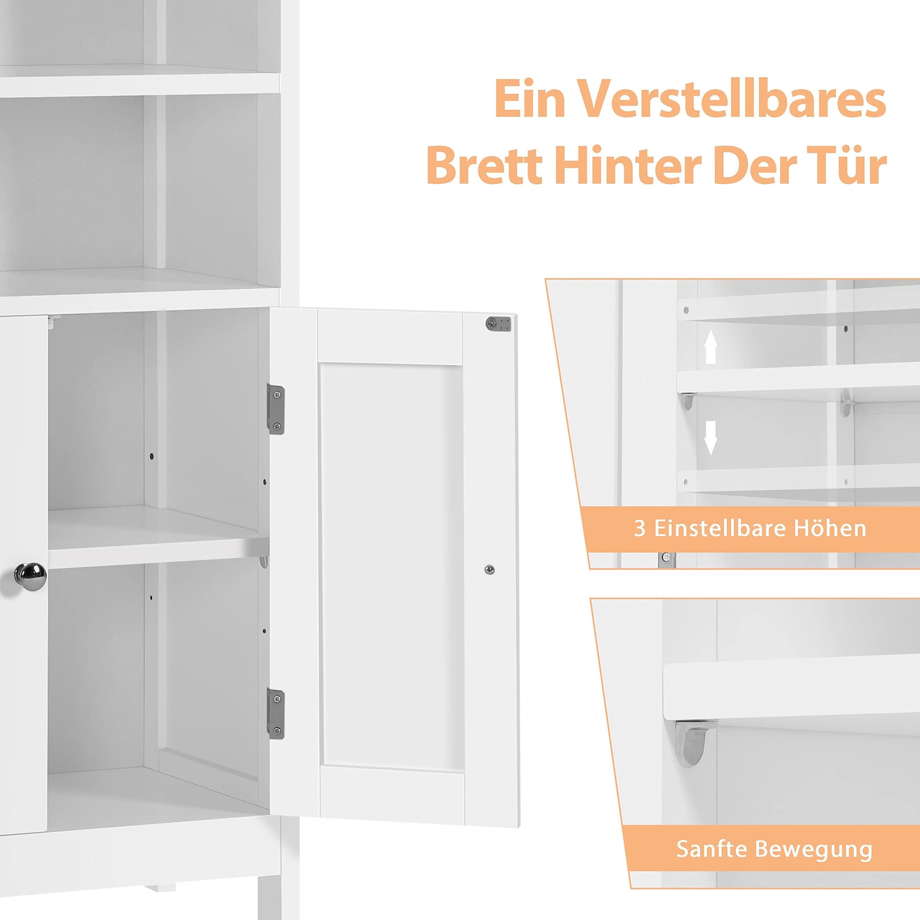 • Einfach zu öffnen und schließen: Die Schranktür ist mit einem Magnetschnäpperausgestattet, um die Tür fest schließen zu können und ein Herausrutschen vonGegenständen zu verhindern. Das Scharnier aus robustem Metall sorgt für einelangfristige Nutzung