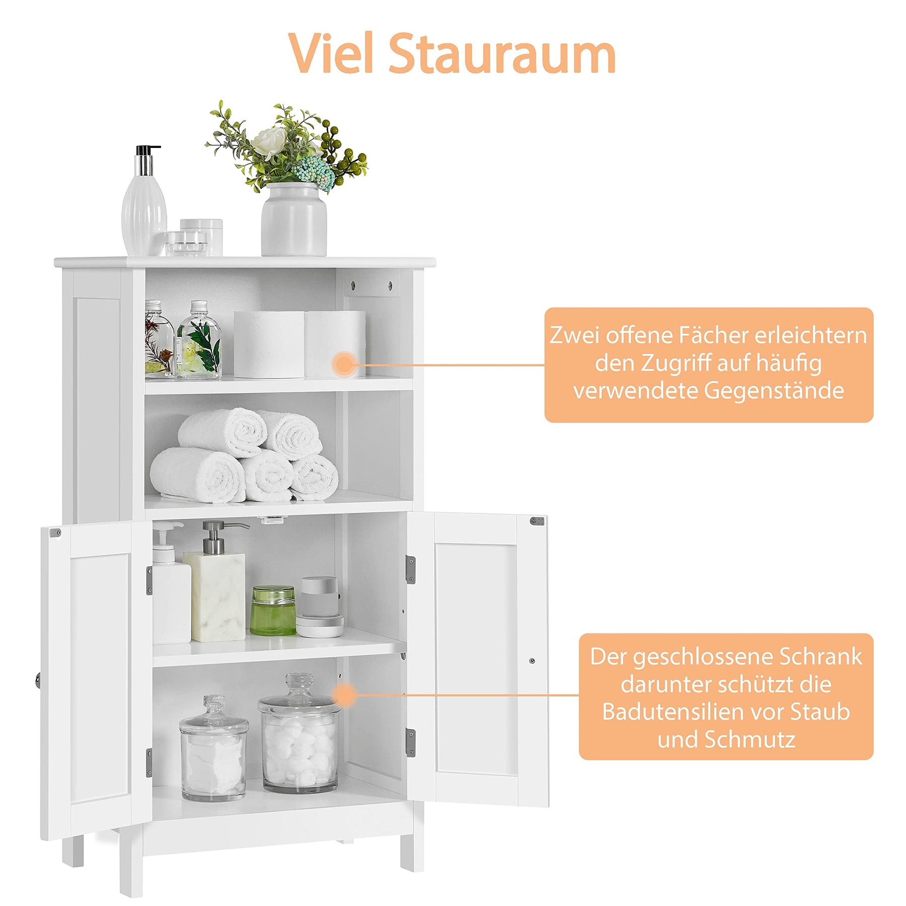 • Genügenden Stauraum: Um Ihre individuellen Bedürfnisse zu erfüllen, verfügtder Schrank über 2 offene Ablagefächer und 1 Schrank mit 2 Türen, dieausreichend Stauraum für Toilettenartikel, Handtücher, Papier, Bücher und dergleichen bieten