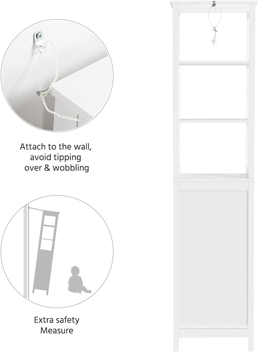 • Robuste Materialien: Dieser mehrschichtige Badezimmerschrank besteht aus den MDF-Holzplatten in der Emissionsklasse E1 und Metall. Die robusten Materialien und die solide Struktur sorgen für eine langfristige Nutzung