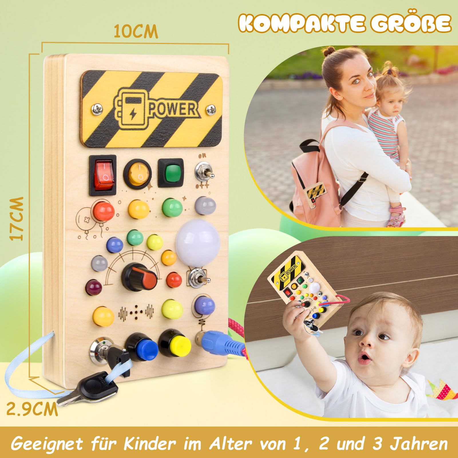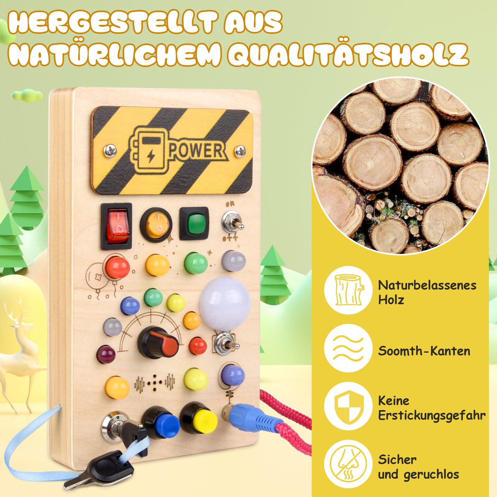 - Entwickelt Feinmotorik: Das Busy Board Holz umfasst 10 verschiedene Schalter, um Ihr Kind zu beschäftigen und ihm bei der Entwicklung seiner Feinmotorik zu helfen