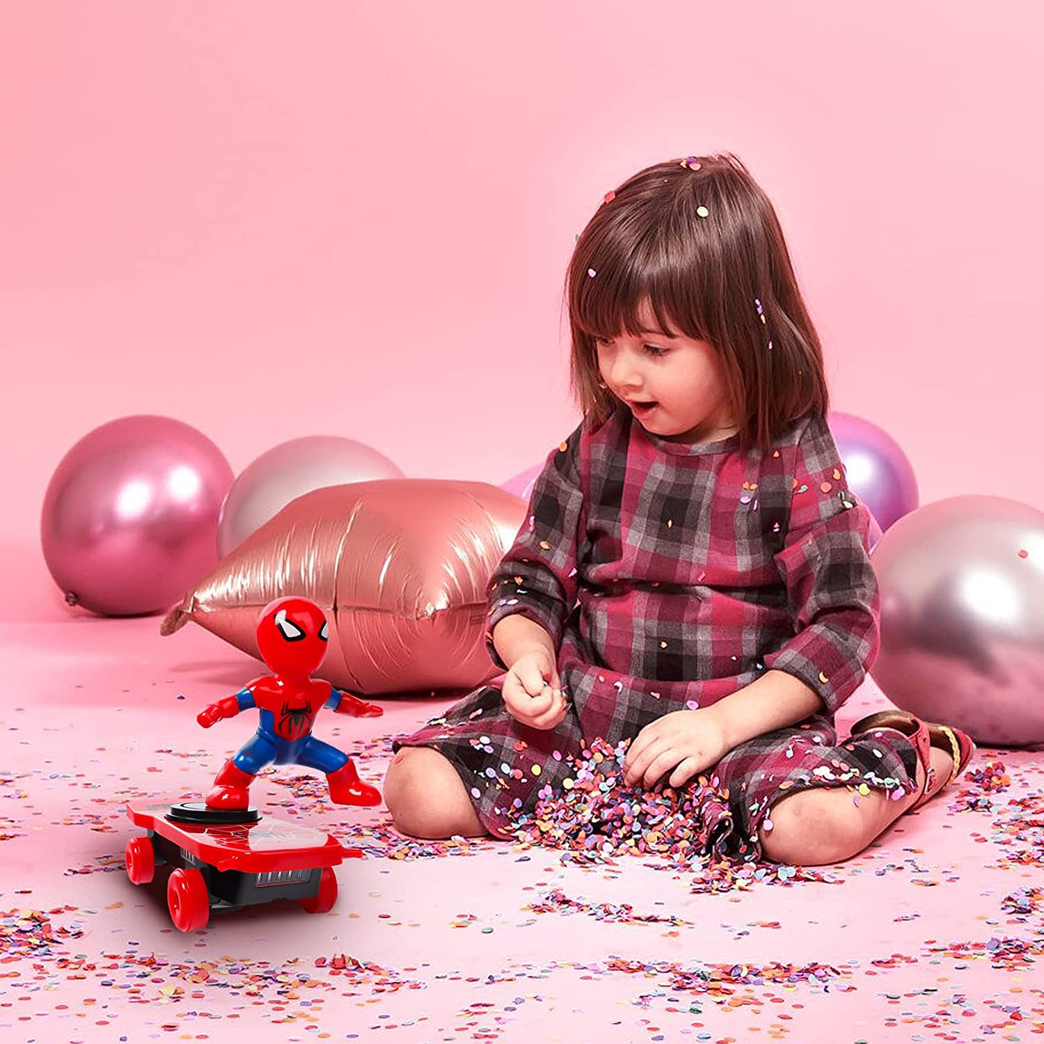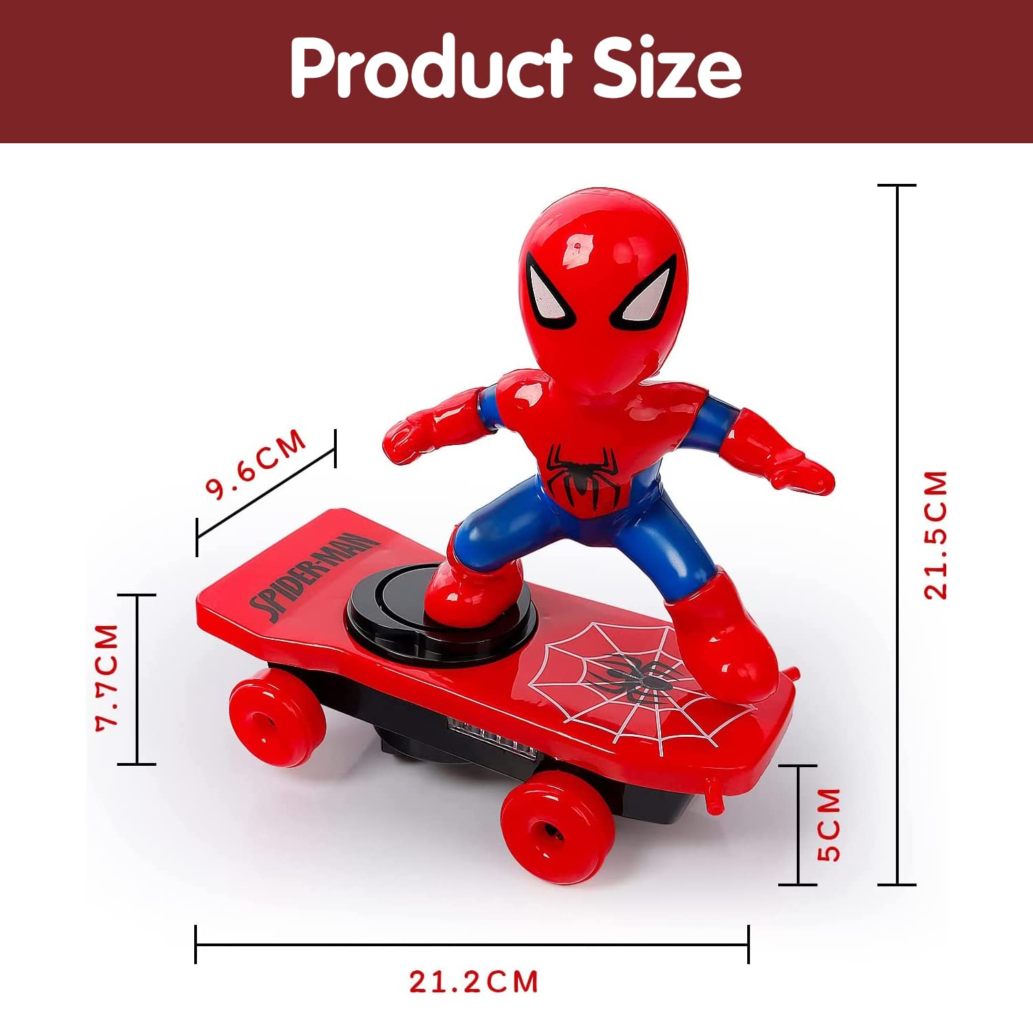 - 【Einfache bedienung】 Die dominierende Spider Man Schritte auf dem Skateboard mit kann um 360 Grad gedreht werden. Starten Sie den Schalter, das Spielzeugauto gleitet von selbst, ohne zu drücken, die untere Riemenscheibe steuert die Rotation des Skateboards, wodurch der Körper stabil.