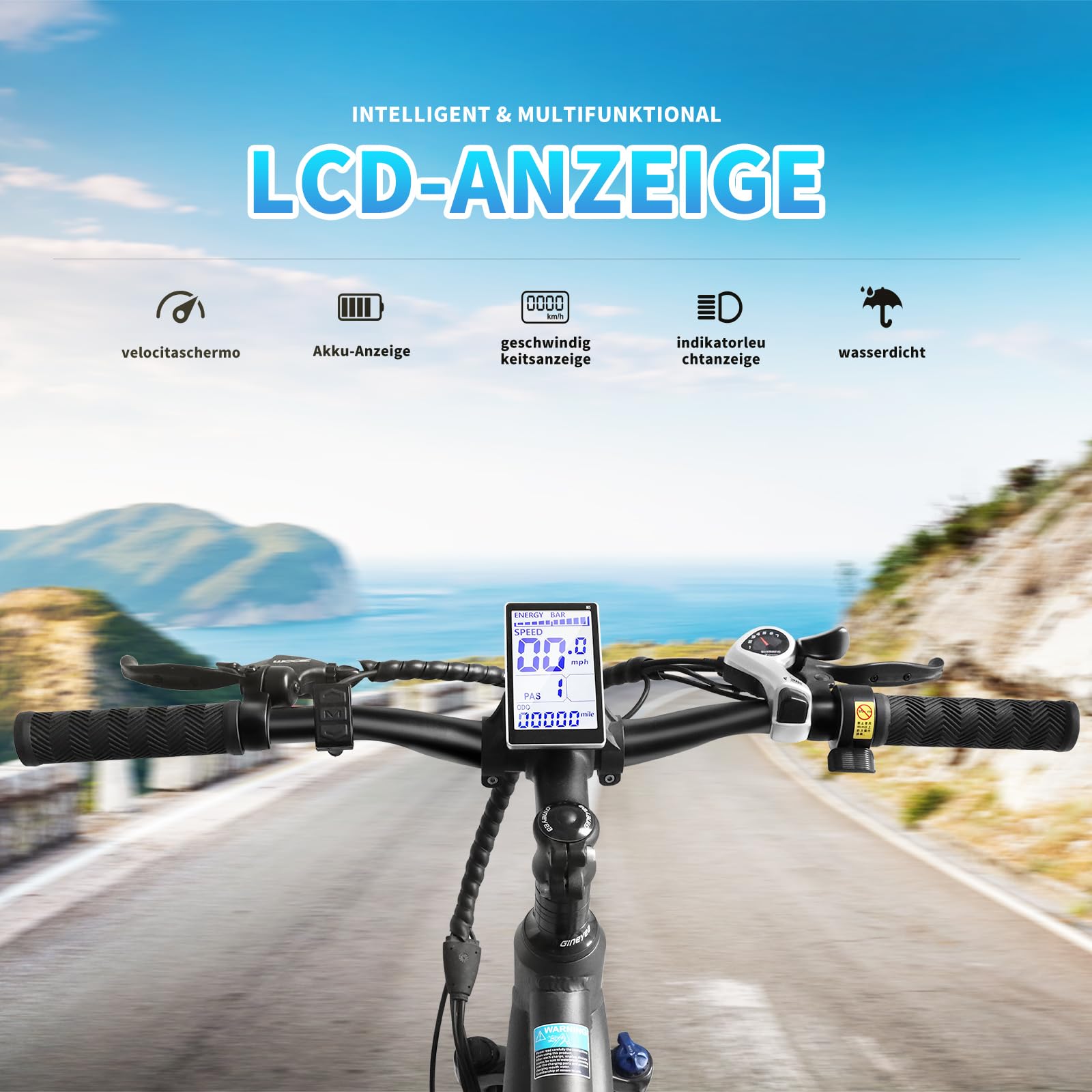 - 【Multifunktionales LCD-Display für volle Kontrolle】 Das integrierte LCD-Display des ZIMONDA Ebikes zeigt in Echtzeit alle wichtigen Informationen an, darunter Geschwindigkeit, Gangwahl, Tageskilometer und Akkustand. So haben Sie stets die volle Kontrolle über Ihre Fahrt und können Ihre Reichweite und Geschwindigkeit optimal überwachen. Das Display ist zudem wasserdicht, sodass Sie auch bei schlechtem Wetter keine Einschränkungen hinnehmen müssen. Ein Montagevideo finden Sie auf der Produktseite bei Amazon, das Ihnen hilft, den Zusammenbau problemlos abzuschließen.