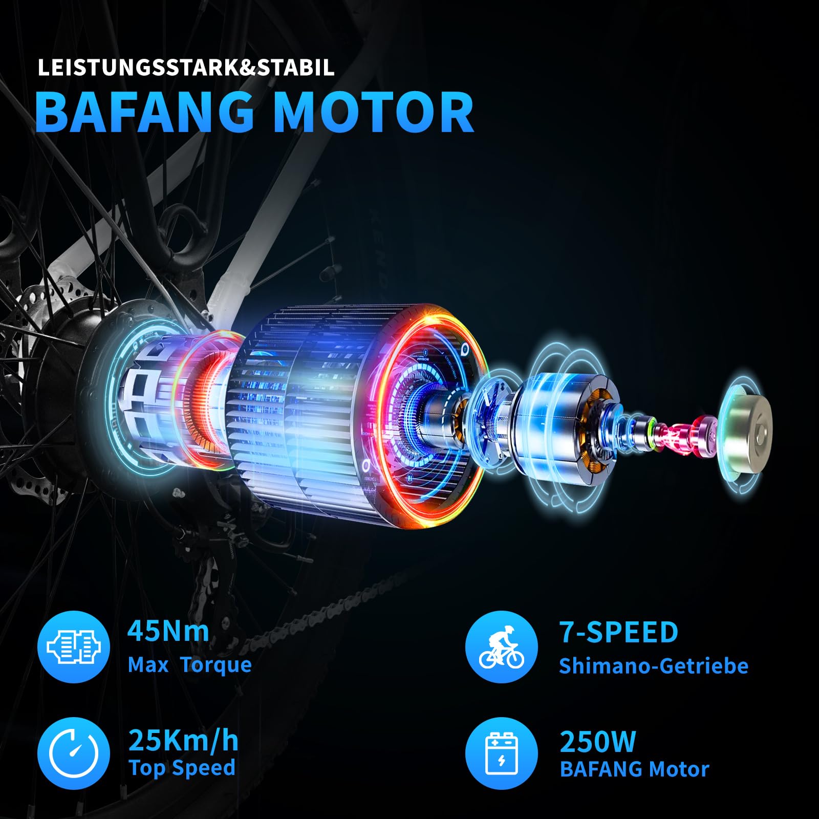 - 【Leistungsstarker Ebike für Stadt und Berg】Das ZIMONDA Ebike ist mit einem 250W bürstenlosen Motor ausgestattet, der ein beeindruckendes Drehmoment von 45Nm erzeugt und Geschwindigkeiten von bis zu 25 km/h erreicht. Der Geräuschpegel bleibt dabei unter 55dB, was für eine leise und angenehme Fahrt sorgt. Ob in der Stadt oder auf unebenem Gelände – dieses Herren-Ebike bietet ein erstklassiges Fahrerlebnis. Besonders praktisch: Das Elektrofahrrad ist bereits zu 85% vormontiert, sodass Sie die restlichen Teile in nur etwa 20 Minuten selbst zusammenbauen können.