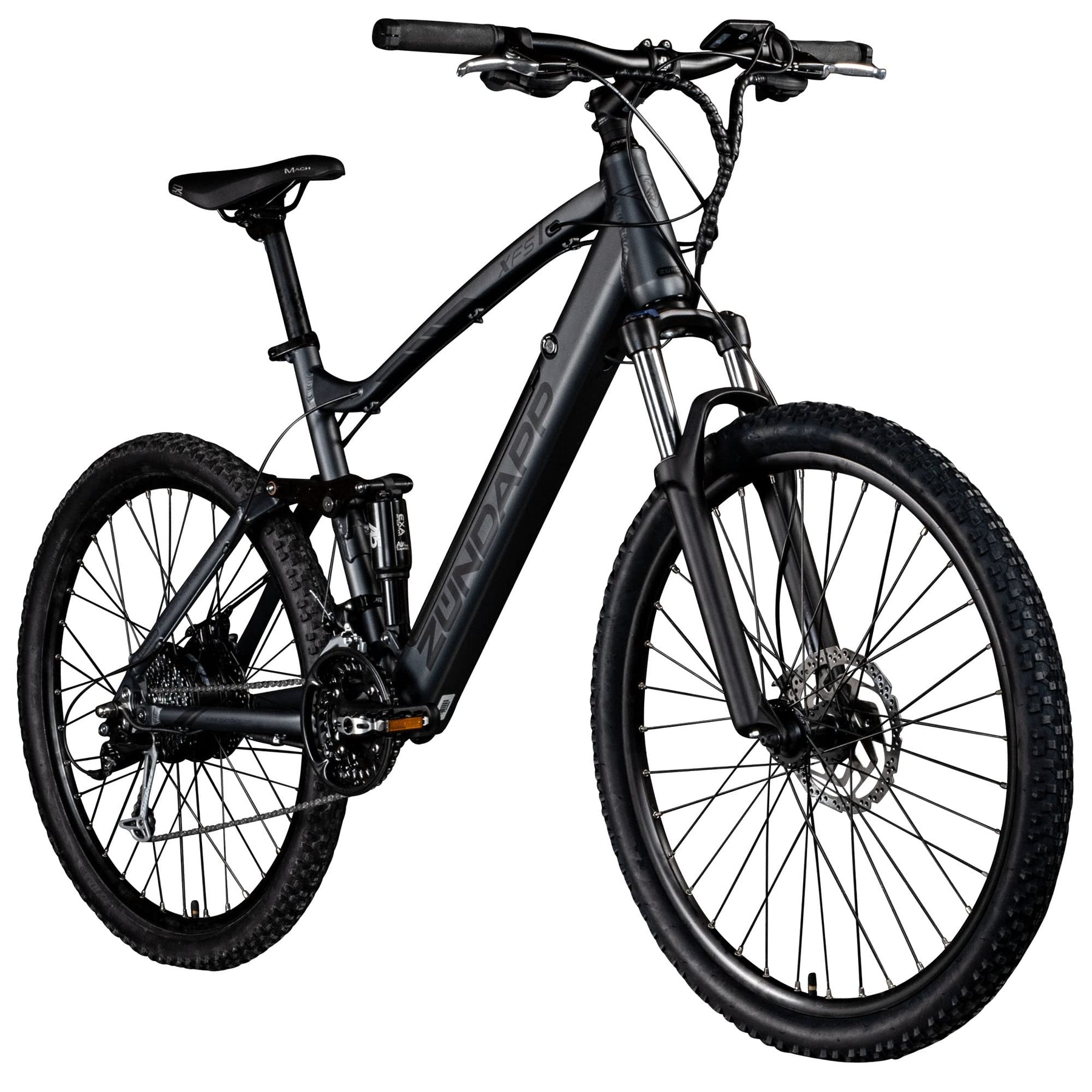 ZÜNDAPP XFS Ebike 27,5 Zoll Fully MTB Fahrrad für Damen und Herren 170-190 cm Elektrofahrrad Hinterradmotor 27 Gang Scheibenbremse E Bike 504 Wh Akku (schwarz, 48 cm)
