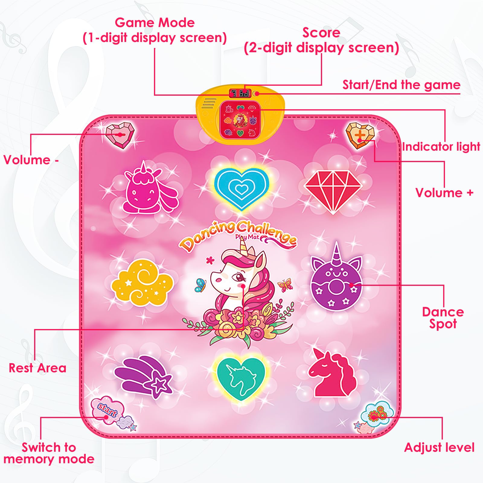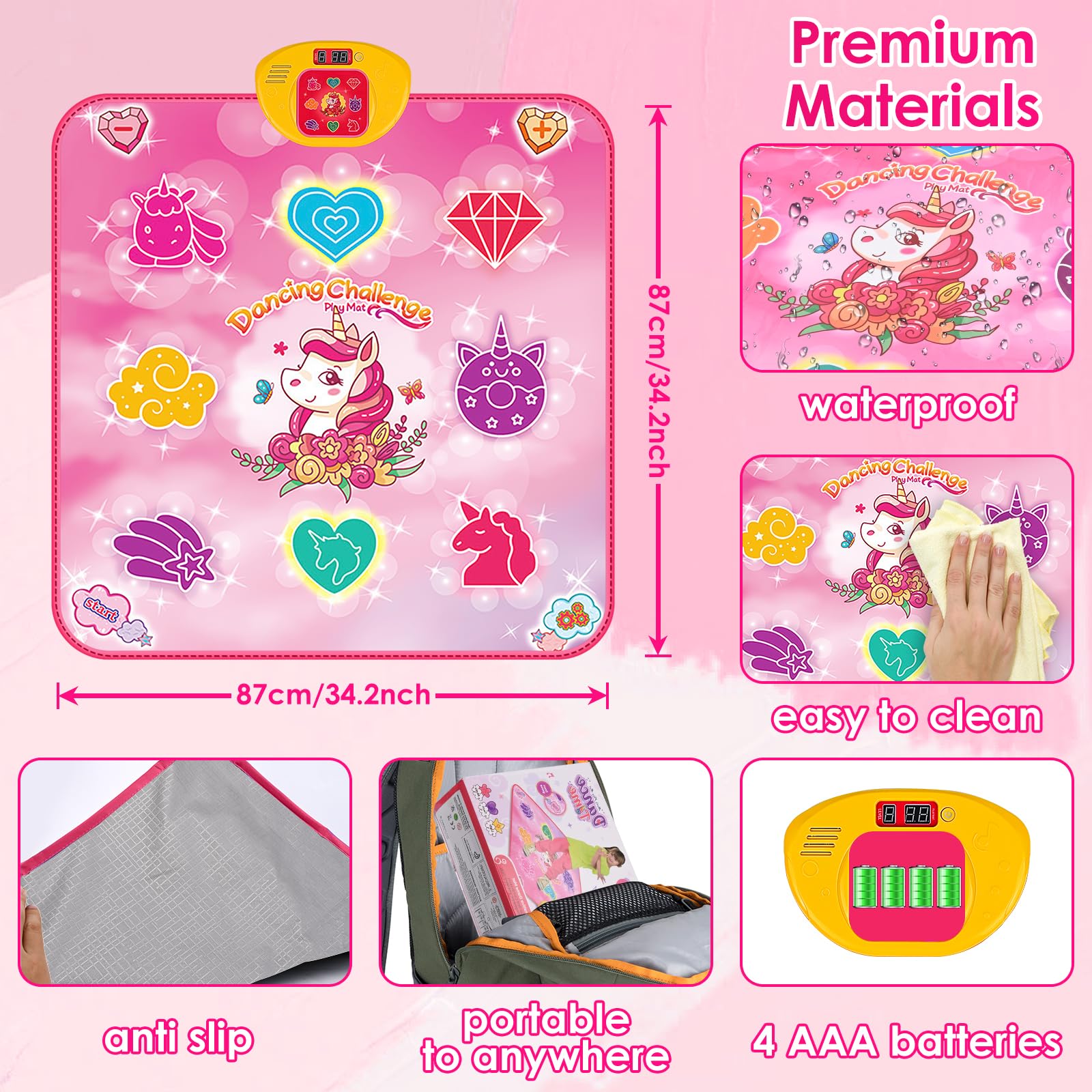 ZWOOS Tanzmatte für Kinder ab 3-12+ Jahre, Beleuchtete Tanzmatte Spielzeug Kinder, Elektronisch Musik Tanzpad Geschenke für Mädchen ab 3 4 5 6 7 8 9 10 11 12 Jahren zu Weihnachten und zum Geburtstag