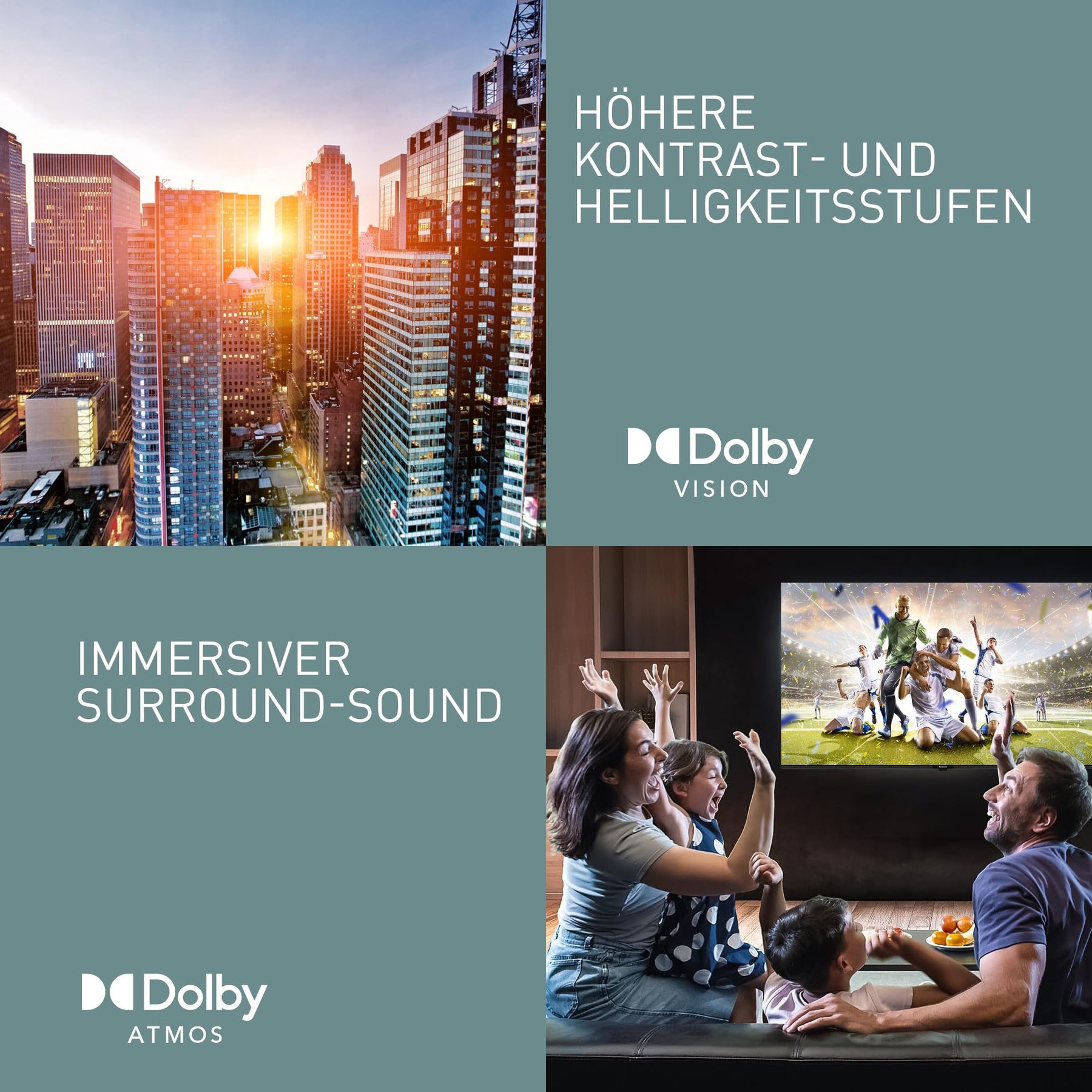 - DOLBY VISION & MULTI HDR: Lebensechte Farben, tiefere Kontraste und spektakuläre Highlights mit Dolby Vision, HDR10 und HLG auf diesem 4K LED-Fernseher