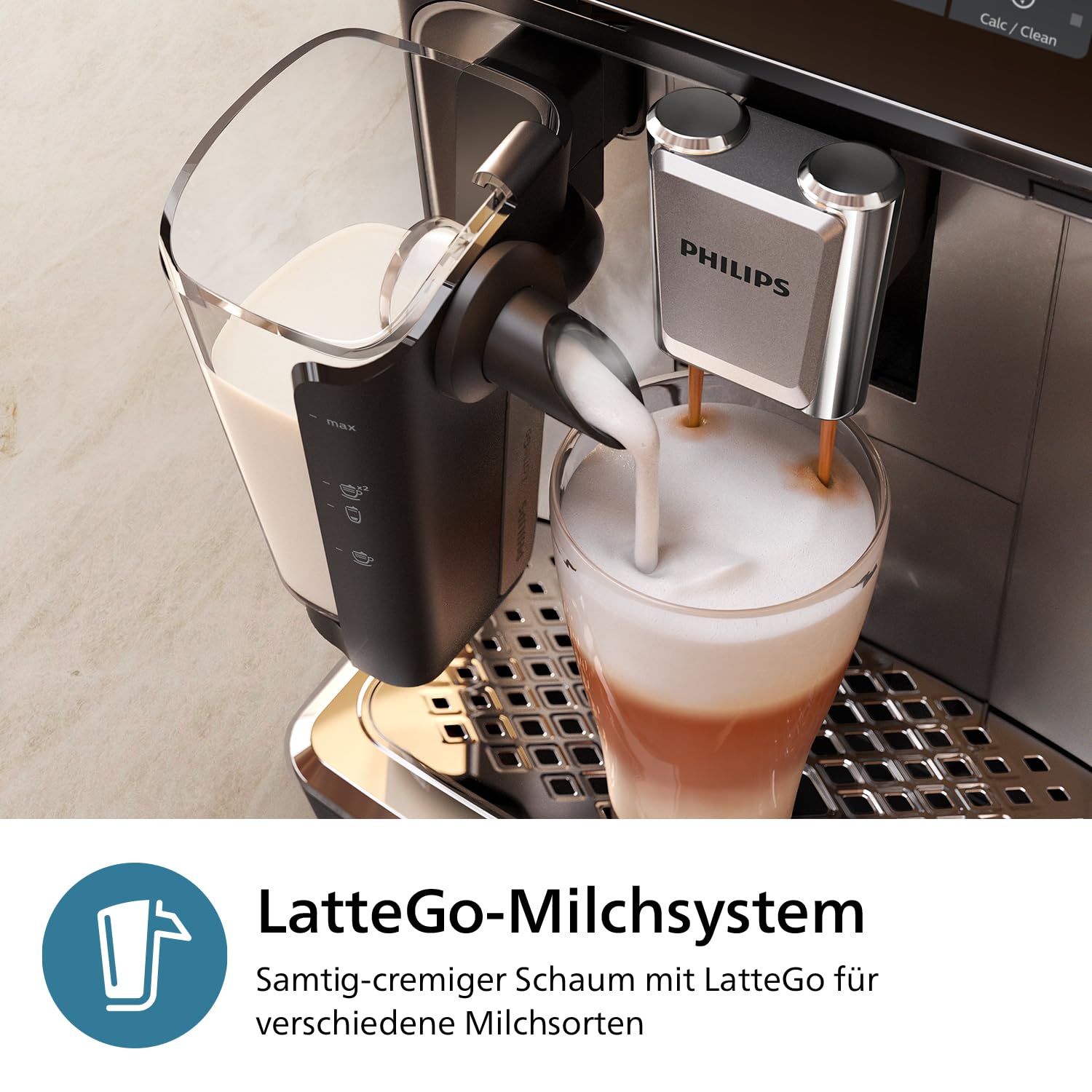 - Samtig-cremiger Milchschaum: Die LatteGo bereitet automatisch samtig-cremigen Milchschaum für Ihren Milchkaffee mit verschiedenen Milchsorten zu. LatteGo ist das am schnellsten zu reinigende Milchsystem aller Zeiten: 2 Teile, keine Schläuche