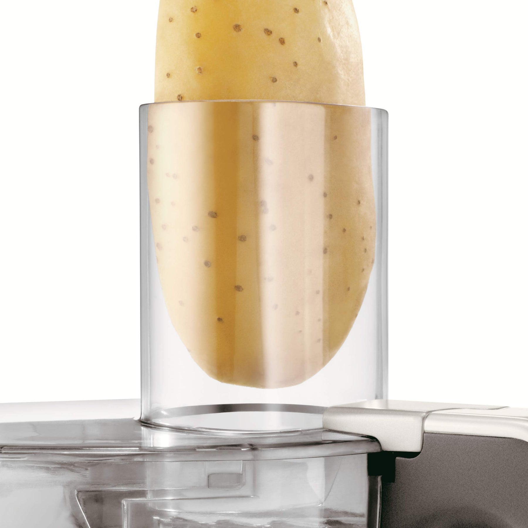 - Lieferumfang: SaladMaker, grobe Schneidscheibe, feine Schneidscheibe, grobe Reibscheibe, feine Reibscheibe, XL-Julienne-Scheibe