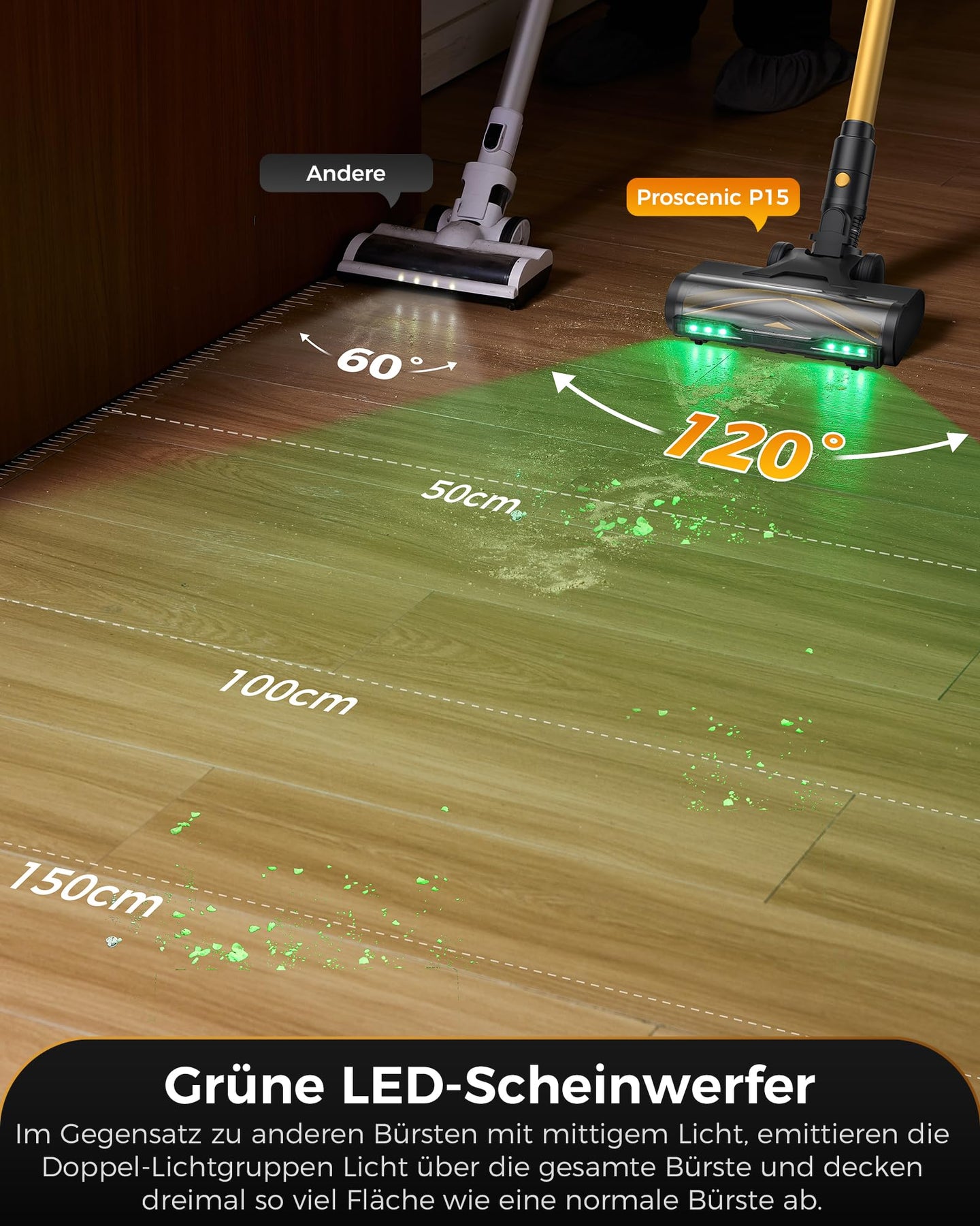 - 【V-förmige Anti-Tangle-Bürste & GreenEye-Technologie】Das extrabreite Dreifachbürstensystem verfügt über eine verstärkte Kammstruktur, um tiefsitzende Tierhaare und Schmutzpartikel effektiv zu entfernen und Verfilzungen vorzubeugen. Das verbesserte grüne LED-Licht macht selbst feinste Staubpartikel in dunklen Ecken sichtbar – für eine noch gründlichere Reinigung!