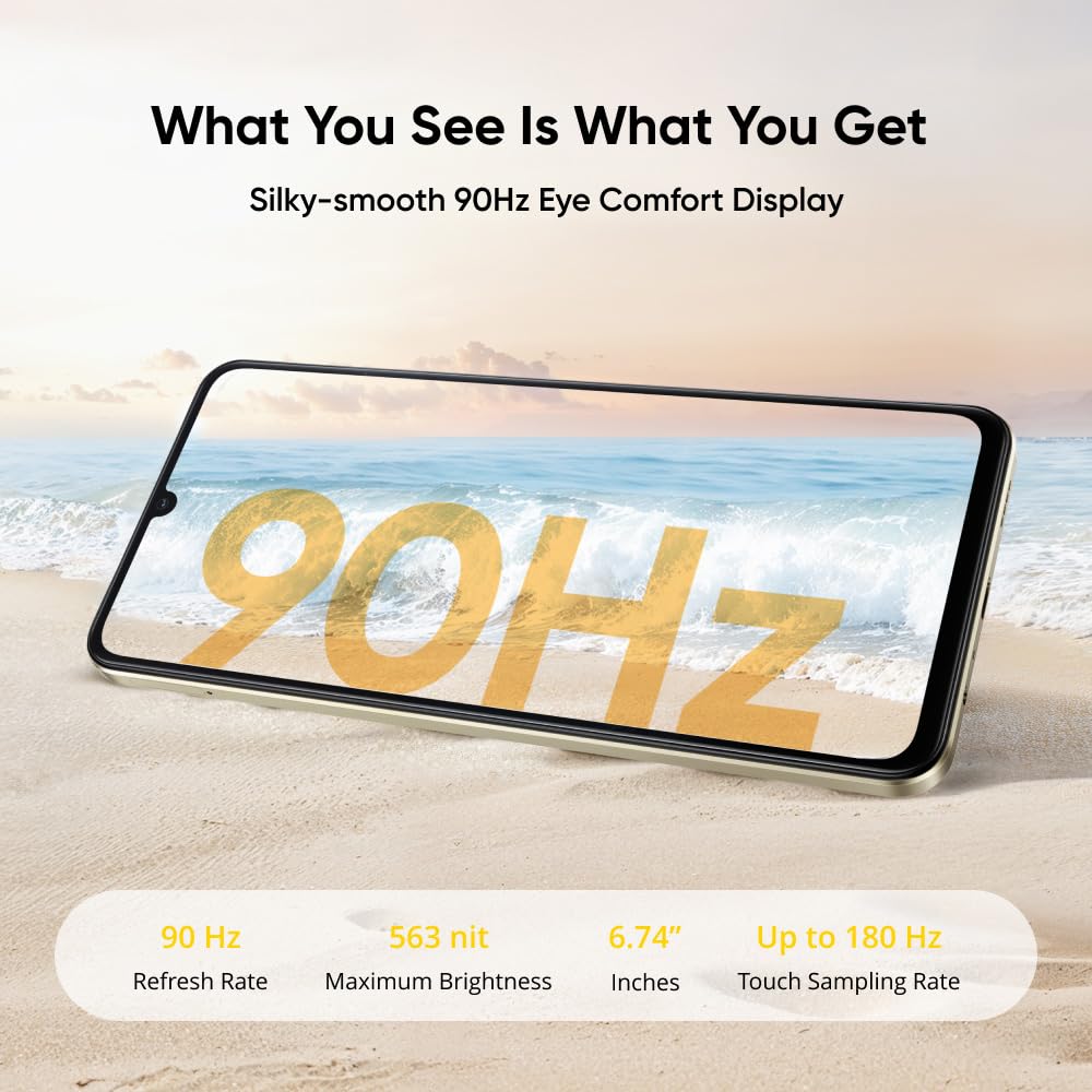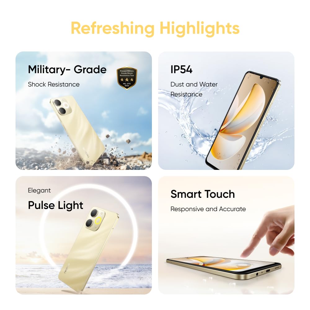 realme Note 70T Smartphone 4+256 GB, 6000mAh Akku, 15W Schnellladung mit 6W Reverse Charge, 24GB Dynamic RAM, 90Hz Augenkomfort-Display, 300% Ultra-Lautstärke, Golden