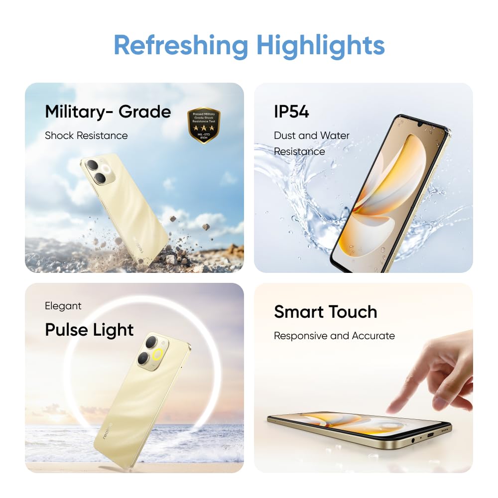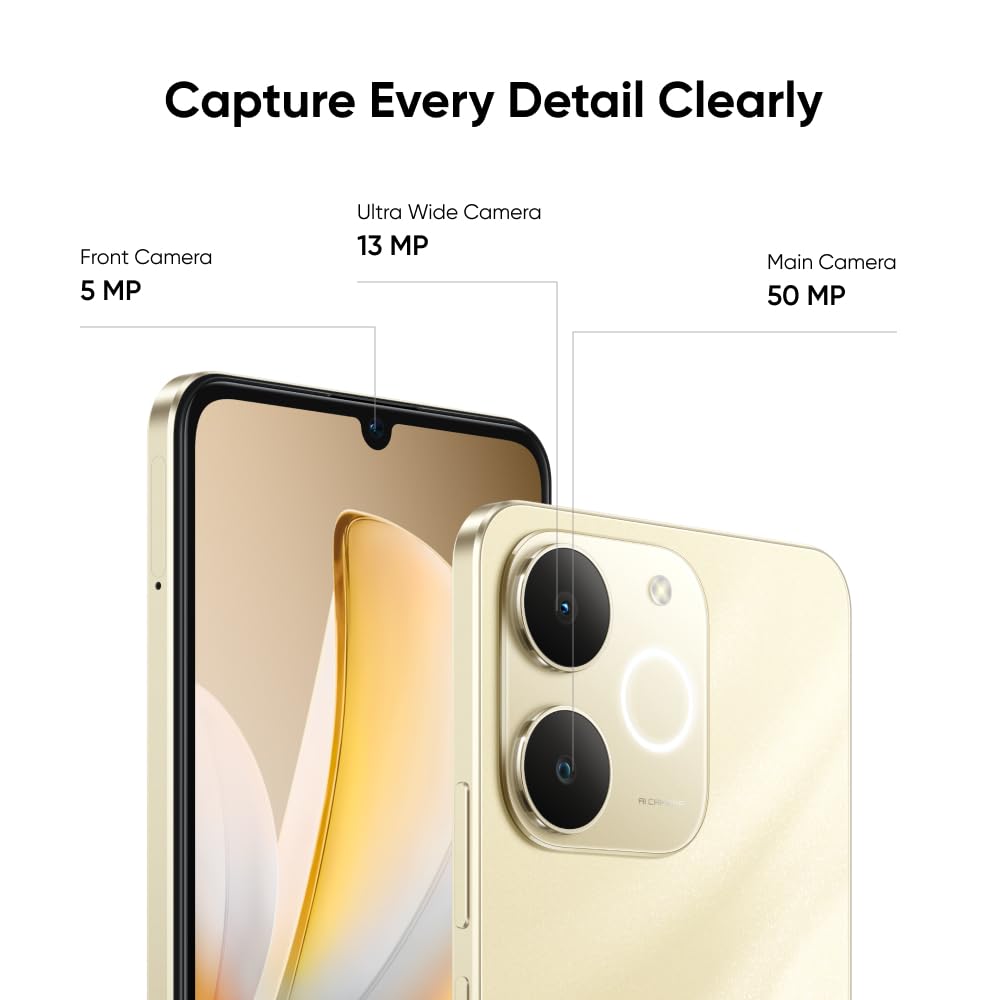realme Note 70T Smartphone 4+64 GB, 6000mAh Akku, 15W Schnellladung mit 6W Reverse Charge, 24GB Dynamic RAM, 90Hz Augenkomfort-Display, 300% Ultra-Lautstärke, Golden