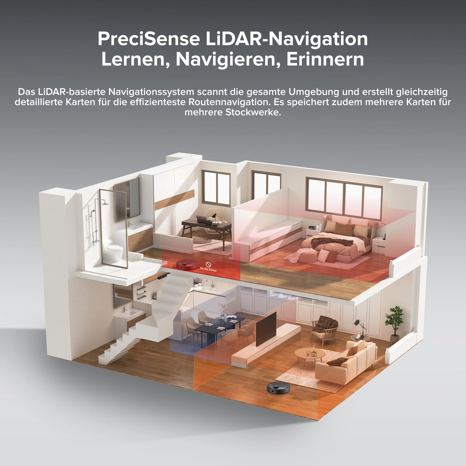 - LiDAR-Navigation & intelligente Vorschläge: Mithilfe fortschrittlicher LiDAR-Technologie erstellt der roboterstaubsauger präzise Karten für effiziente Reinigung und speichert mehrere Grundrisse, perfekt für mehrgeschossige Häuser. Mit intelligenter Hindernisvermeidung und anpassbaren No-Go-Zonen profitierst du von einer reibungslosen und ununterbrochenen Reinigung.