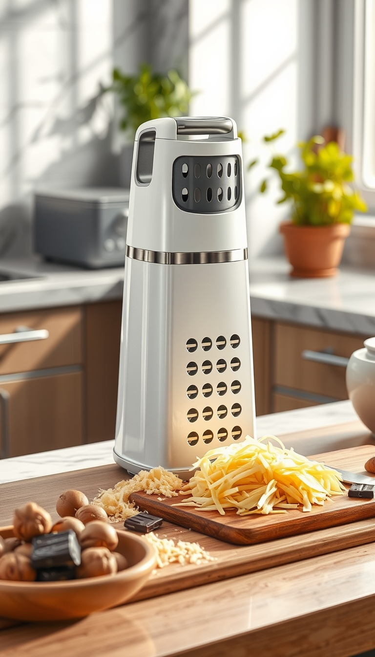 Die ROMMELSBACHER Multi Reibe MR 6 ist ebenfalls hervorragend geeignet für das Reiben von Schokolade. Ob für Kuchen, Muffins oder als Dekoration für Desserts – die feinen Schokoladenstückchen verleihen Ihren Kreationen nicht nur ein ansprechendes Aussehen, sondern auch einen intensiven Geschmack. Durch die verschiedenen Reibestufen haben Sie die Möglichkeit, die Schokolade ganz nach Ihren Wünschen zu verarbeiten. Während grobe Stücke ideal für Toppings sind, sorgen fein geriebene Schokoladenflocken für eine gleichmäßige Verteilung im Teig.