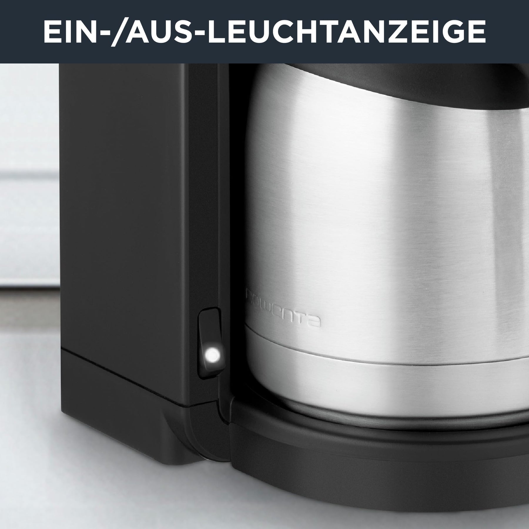 Einzelheiten: Starten Sie stilvoll in den Tag. Mit der Adagio Milano entdecken Sie eine elegante und trendige Filterkaffeemaschine: ein Kontrast von matten und glänzenden Oberflächen. Die stoßfeste Edelstahl- Isolierkanne hält Ihren Kaffee für bis zu 4 Stunden lang warm und fasst bis zu 1,25 Liter, was in etwa 10-15 Tassen entspricht. Die Adagio ist eine der am meist verkauften Kaffeemaschinen in Deutschland. Sie schaltet sich dank ihrer automatischen Abschaltfunktion (beleuchteter An/Aus-Druckschalter) automatisch nach Ende des Brühvorgangs ab. Der sichtbare Wasserstand und der schwenkbare, abnehmbare Filterhalter ermöglichen darüber hinaus eine bequeme sowie einfache Handhabung. Die Kaffeemaschine Adagio von Rowenta eignet sich bestens für alle mit hohen Qualitätsansprüchen für Kaffeearoma, Design und Zuverlässigkeit. Genießen Sie leckeren Filterkaffee von der ersten Tasse an.