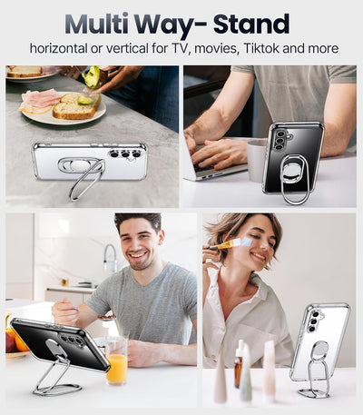 - 【Frei drehbarer Ringständer】 Dieses Samsung Galaxy A55 Gehäuse verfügt über eine 360° drehbare Basis und 2 verstellbare Arme, die sich jeweils bis zu 180° und 350° verstellen lassen. Es bietet vielseitige Möglichkeiten für freihändiges Betrachten.