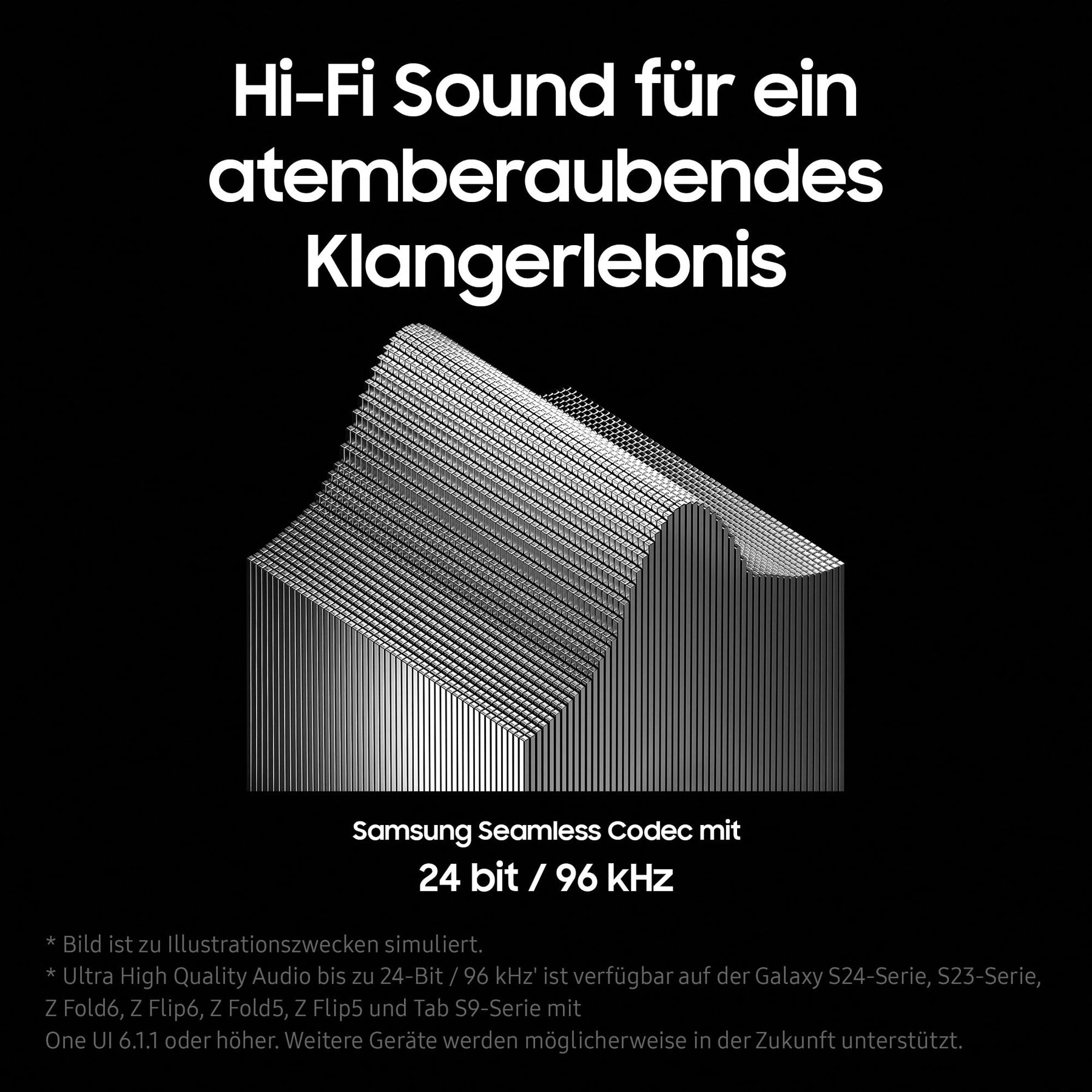 - Die hohe Audioqualität bleibt vom Tonstudio bis zu den Galaxy Buds3 Pro erhalten. Der Samsung Seamless Codec komprimiert und codiert Sound mit bis zu 24 bit/ 96 kHz und einer hohen Klangtreue, damit du auch subtile Details so hören kannst, wie es ursprünglich gedacht war.⁴