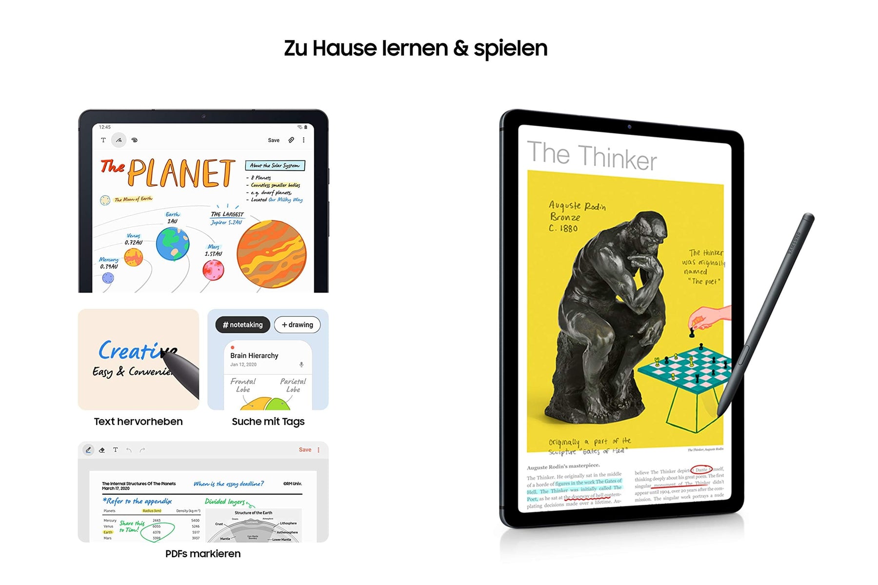 Einzelheiten: Entdecke die neue, überarbeitete 2024er-Version des Samsung Galaxy Tab S6 Lite. Das brillante, 26,42 cm / 10,4" große Display des Samsung Tablets macht die Arbeit zum Vergnügen und Gaming zu einem besonderen Ereignis. Mit dem vielseitigen, jederzeit einsatzbereiten S Pen kannst du nützliche Notizen und poetische Texte verfassen oder faszinierende Zeichnungen anfertigen² – egal ob du arbeiten oder deiner Kreativität Ausdruck verleihen willst. Schlank und leicht: Der nahtlose, metallische Unibody sorgt für eine geringe Gerätetiefe und ein geringes Gewicht. Und dank dem ausdauernden Akku mit 7.040 mAh bist du bereit für lange Arbeitstage und vergüngliche Serienmarathons.⁵ Die leistungsstarke Sicherheitsplattform Samsung Knox schützt dich auf mehreren Ebenen vor Angriffen und Eindringlingen – für zuverlässigen Schutz und eine sorgenfreie Nutzung.