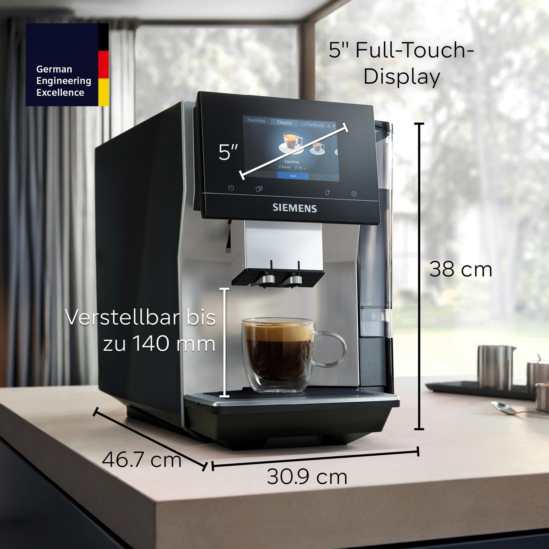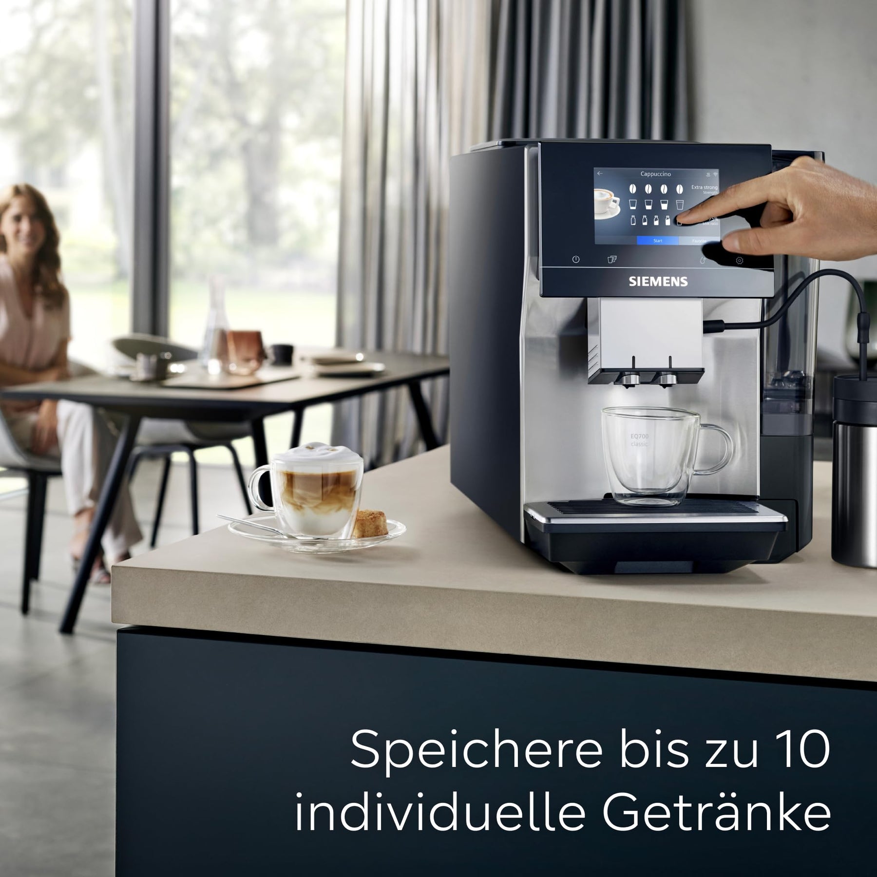 Siemens Kaffeevollautomat EQ700 classic, großes farbiges TFT-Display, 36 Heiß- und Kaltgetränke, Cold Brew, 10 Favoriten, 2-Tassen-Funktion, Steuerung per App, autom. Reinigungsystem, Silber, TP715E17