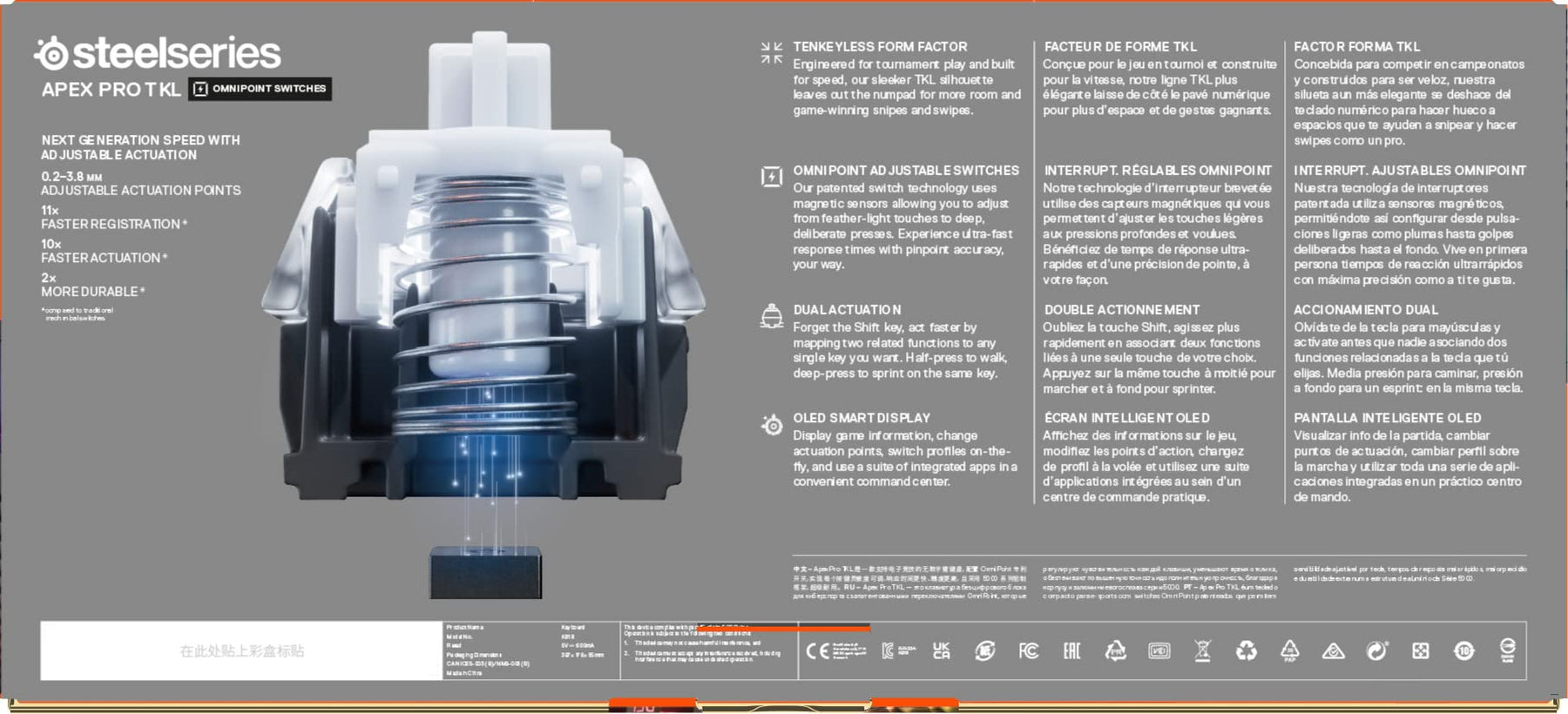 Vernichten Sie die Konkurrenz mit der schnellsten Gaming-Tastatur der Welt und den verbauten Hall Effect-Magnettriggern. Die Apex Pro TKL führt Sie mit den anpassbaren OmniPoint 2.0 HyperMagnetic Switches, die durch Rapid Trigger für schnellere Auslösung eine 20 Mal schnellere Betätigung und 11 Mal schnelleres Ansprechverhalten ermöglichen, zum Sieg. Passen Sie den Tastenanschlag an die gewünschte Registrierungstiefe von 0,1 mm bis 4,0 mm an, um entweder blitzschnelle Aktionen in Spielen auszuführen oder maximal präzise zu tippen. Mit der Tasten-Doppelbelegung können Sie einzigartige Kombinationen erstellen, indem Sie jeder Taste noch eine zweite Aktion zuweisen. Mit der SteelSeries Engine können Sie das gesamte Potenzial dieser Tastatur entfesseln und sie ganz einfach an Ihre Bedürfnisse anpassen.