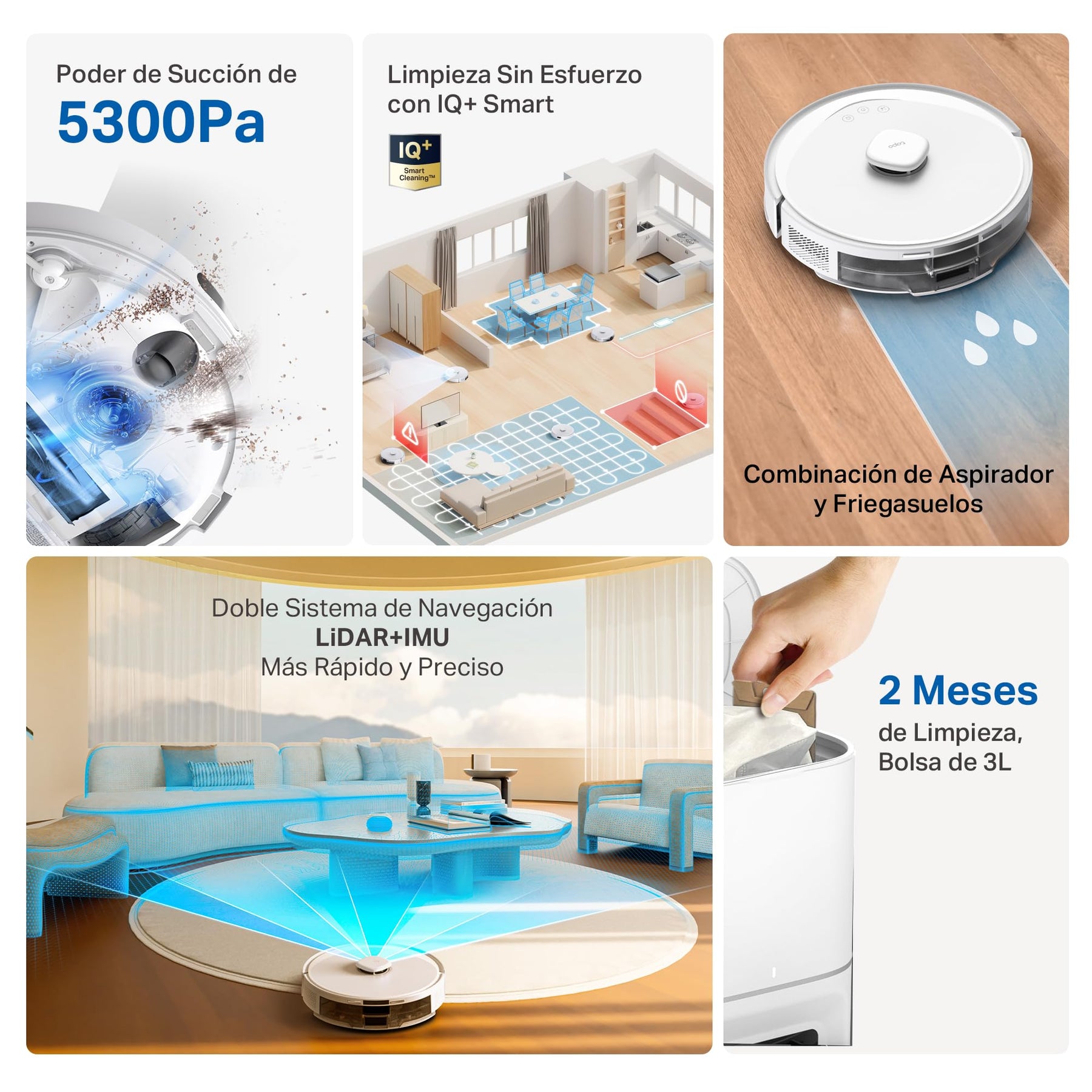 Einzelheiten: Der Tapo RV30 Max Plus ist ein hochmoderner Saug- und Wischroboter, der mit einer extrem leistungsstarken 5300Pa-Saugkraft ausgestattet ist. Diese Hyper-Suction-Technologie gewährleistet, dass der Roboter effektiv Staub, Tierhaare und Schmutz auf allen Bodenbelägen aufnimmt, sodass Ihr Zuhause makellos bleibt. Dank des LiDAR+IMU-Dual-Navigationssystems kartiert der Roboter Ihr Zuhause in nur wenigen Minuten präzise, vermeidet Auslassungen und wiederholte Reinigungen, und funktioniert auch im Dunkeln einwandfrei. Ein weiteres Highlight ist die automatische Staubentleerung mit einem 3-Liter-Staubbeutel, der bis zu zwei Monate lang verwendet werden kann, sodass Sie die Reinigung komplett sorgenfrei gestalten können. Darüber hinaus erkennt der RV30 Max Plus mehrere Etagen und speichert bis zu vier Etagenkarten, um eine umfassende Reinigung zu gewährleisten. Der Roboter lässt sich auch bequem per Sprachbefehl über Amazon Alexa oder Google Assistant steuern. Individuelle Reinigungspläne, No-Go-Zonen und eine Kombination aus Staubsaugen und Wischen machen ihn zu einer idealen Lösung für Haushalte mit unterschiedlichen Reinigungsanforderungen