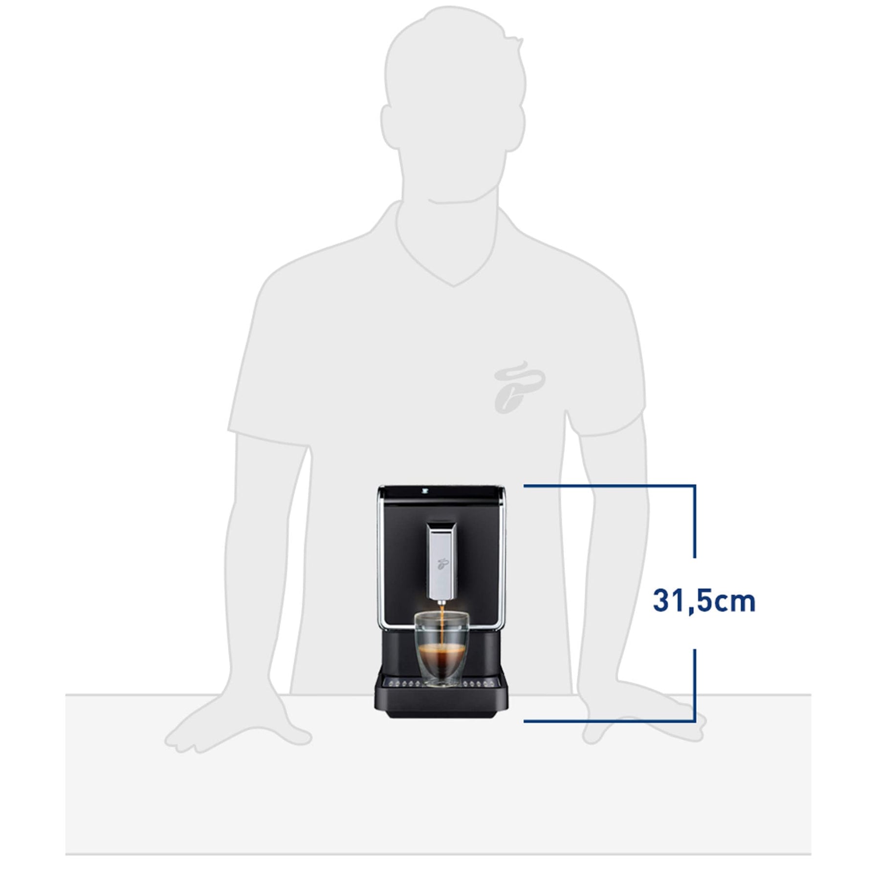 PLATZSPARENDES DESIGN + HÖHENVERSTELLBAR: Mit nur 18cm Breite passt dieser Tchibo Vollautomat in jede Küche, außerdem ermöglicht der höhenverstellbare Tassenauslauf von bis zu ca. 15,5cm Ihnen die Verwendung unterschiedlicher Tassen und Gläser