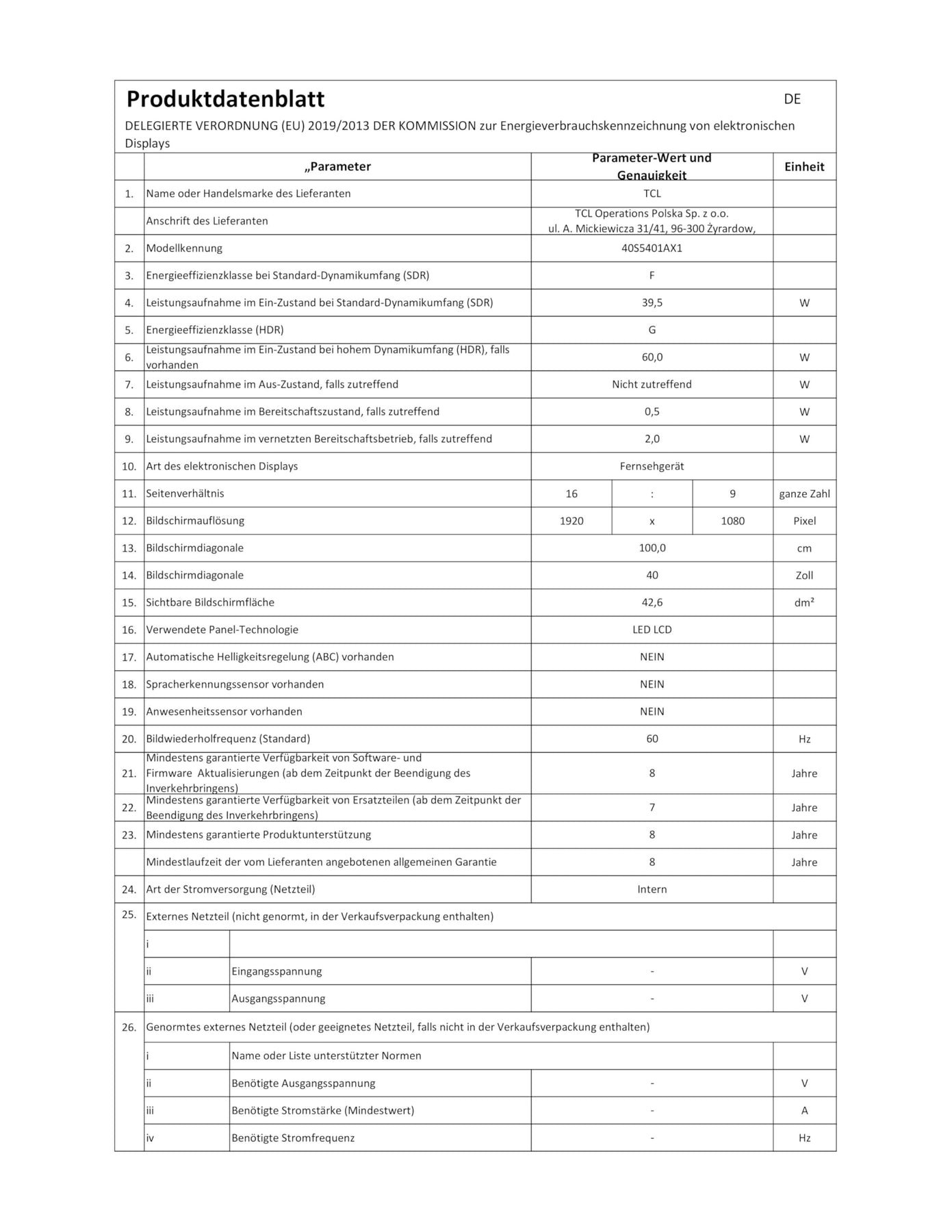 Einzelheiten: TCL 40S5401A, 40 Zoll FHD Smart fernseher, Android TV – HDR und Micro Dimming - Compatible mit Google Assistant, Chromecast und Google Home, Slim Design.