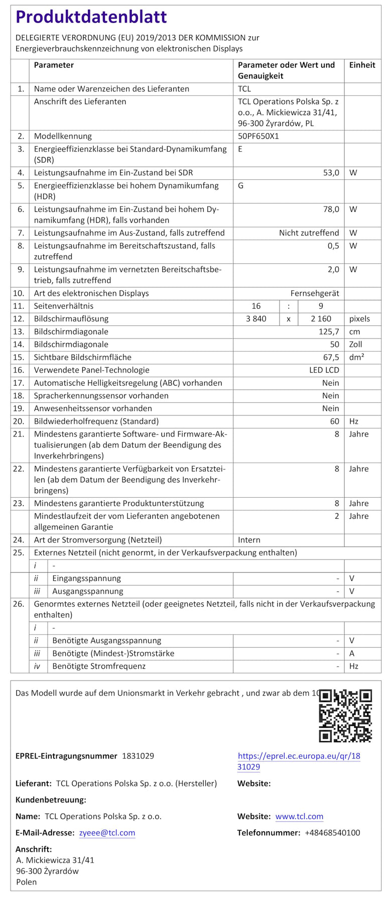 Artikelnummer: 50PF650